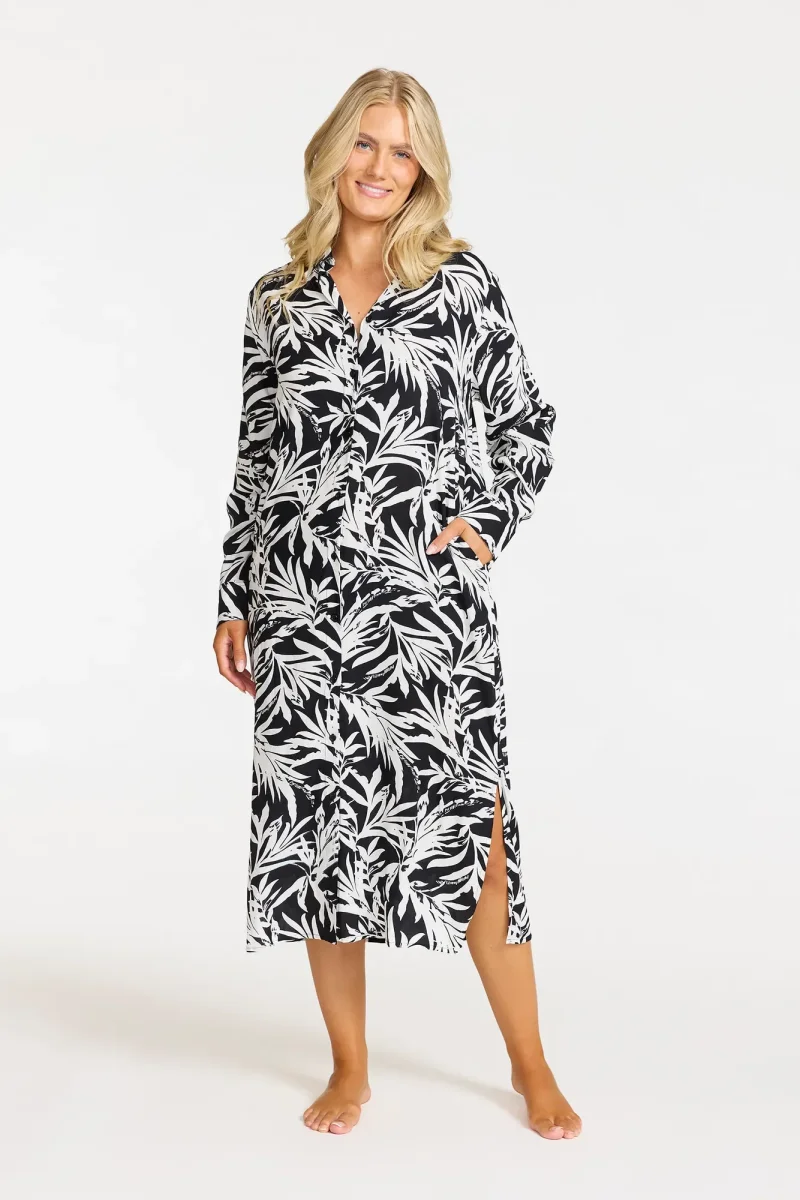 Upptäck vår klänning Aimee designad i mjukt, vävt viskostyg. Designad med långa ärmar, en skjortkrage och en stilren knäppning framtill får den en sofistikerad look som passar både till vardag och stranden.