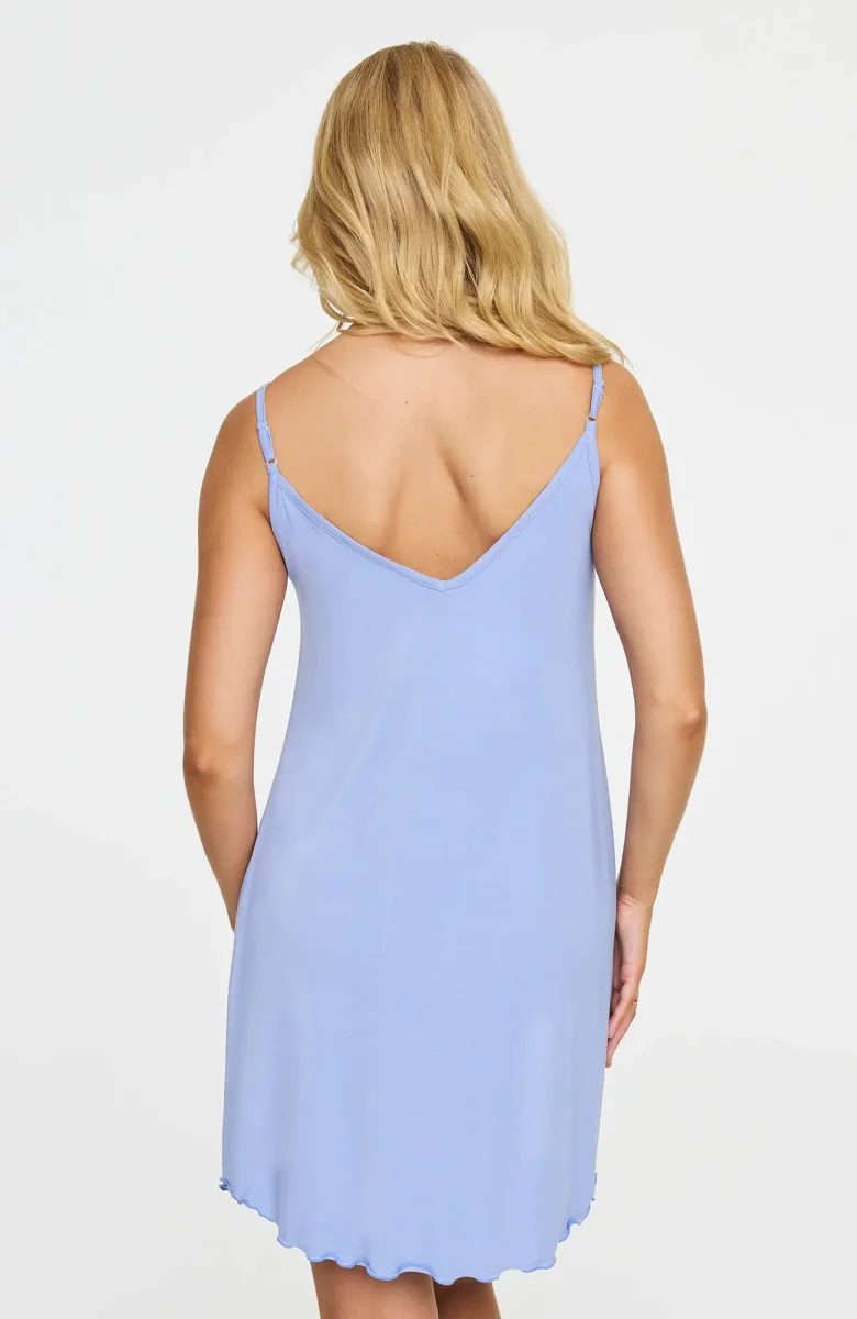Nattlinne i bambuviskos med dekorativt vågformad kant upptill och vid fållen, tunna och justerbara axelband. Erbjuder en blandning av komfort och stil med sitt mjuka bambuviskosmaterial. Njut av en fridfull natts sömn i denna vackert designade nattklädsel.