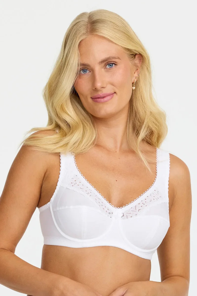 Upplev en kombination av stil och funktion med vår bygel-BH Mira, designad för att ge både stöd och en smickrande silhuett. Mira har breda, mjuka och justerbara axelband med fina detaljer längs banden för en elegant känsla. En liten rosettdetalj framtill tillför en feminin touch. Bygeln ger bra stöd och ett naturligt lyft för bysten – en modell som passar perfekt för vardagens alla behov. Tillverkad i Europa.