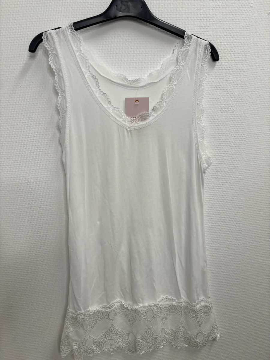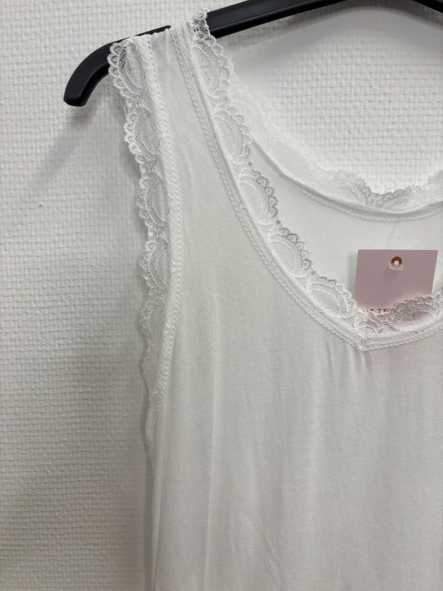 Stretchigt linne med spetsdetaljer. Färg: Vit Material: 100% Viskos
