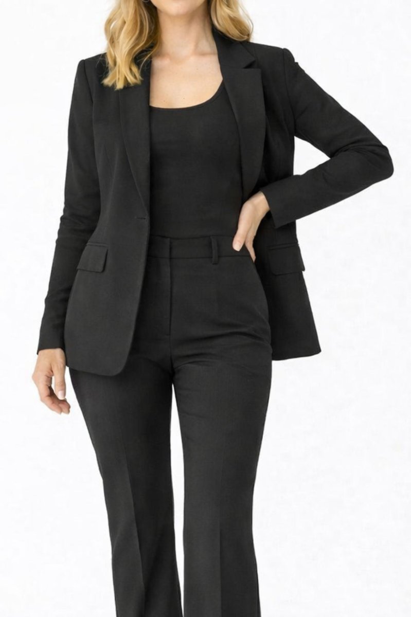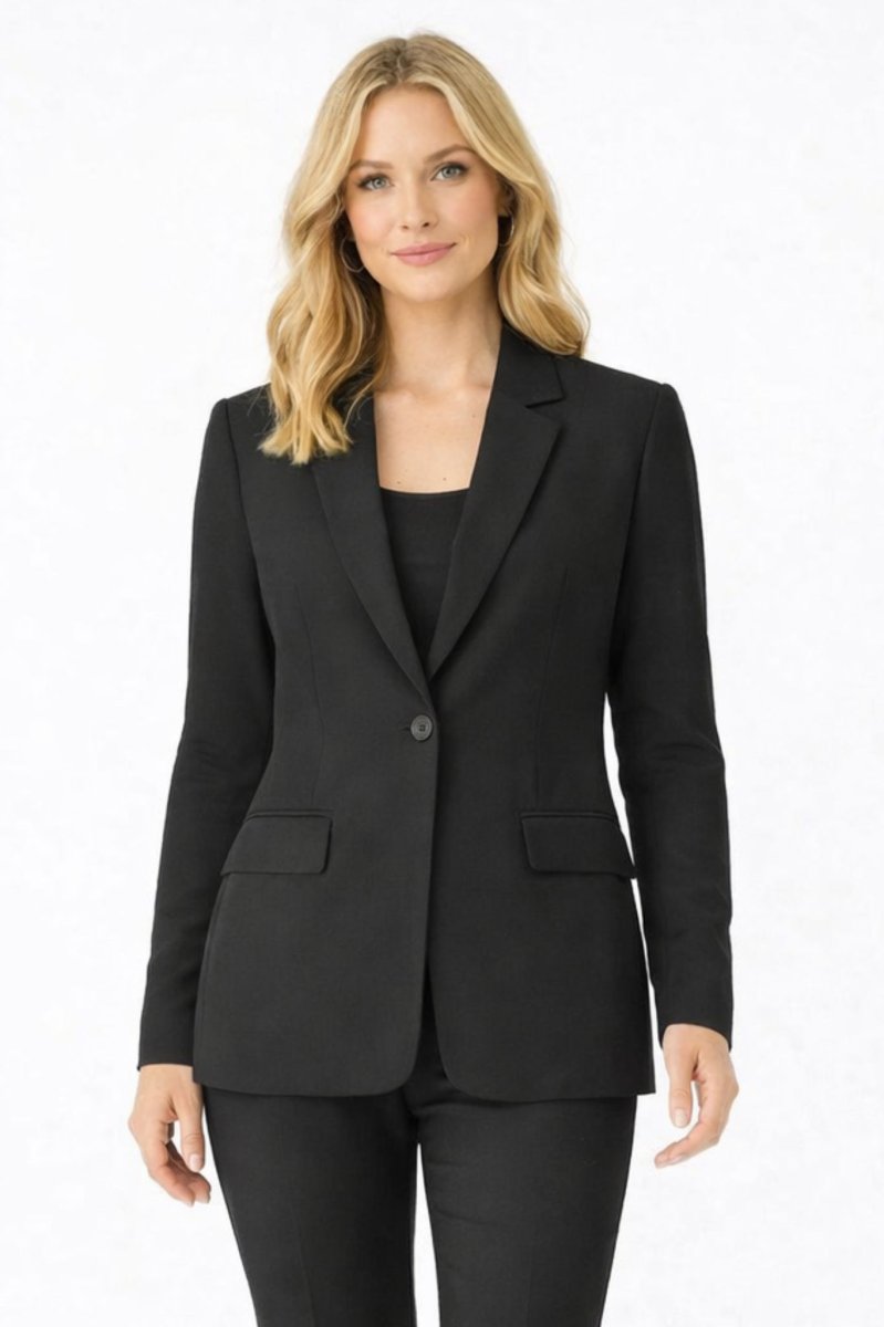 Kavaj med rak och ledig passform, enkelknäppt stängning, slagkrage och två framfickor med lock.