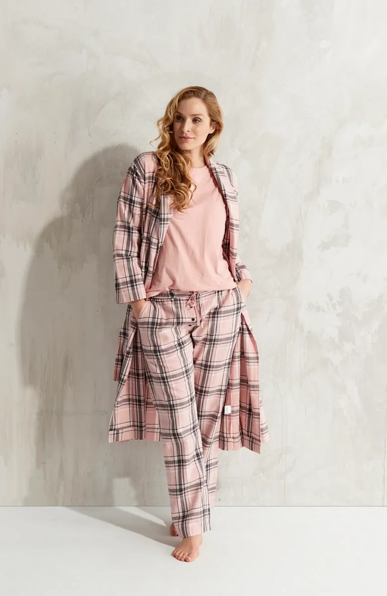 Omlott-rock i rutig bomullsflanell med sjalkrage, lång ärm