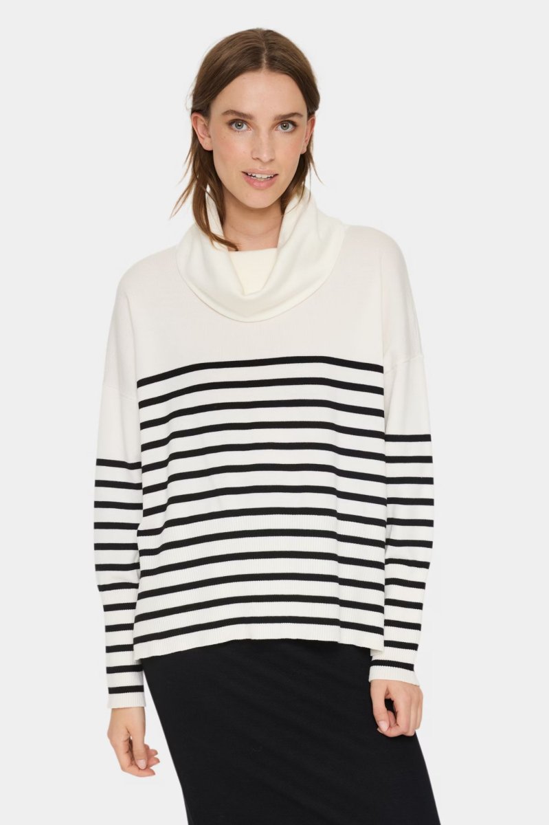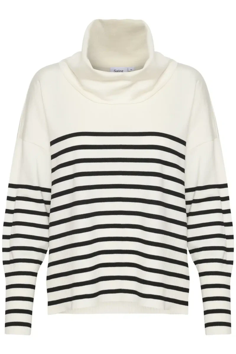 Randig tröja i rak, avslappnad passform och hög, vid polokrage.