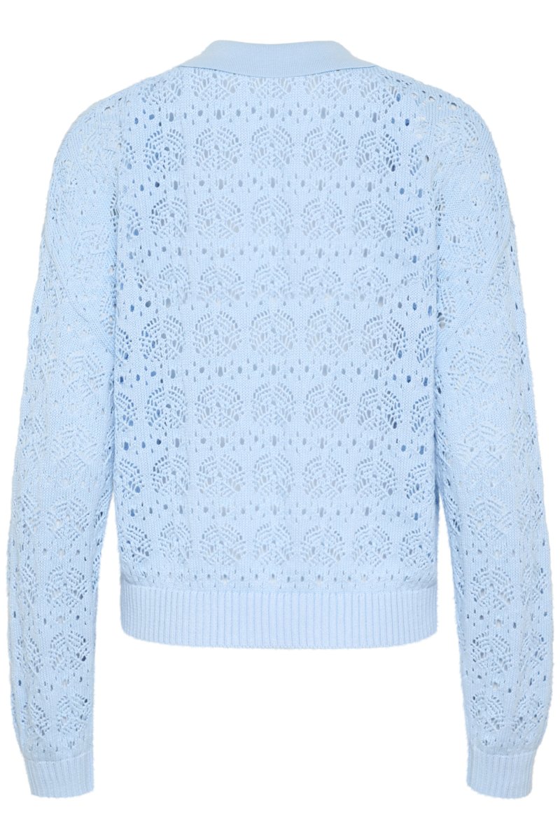 Stickad tröja i något kortare passform, med hålmönster och mjuk struktur.