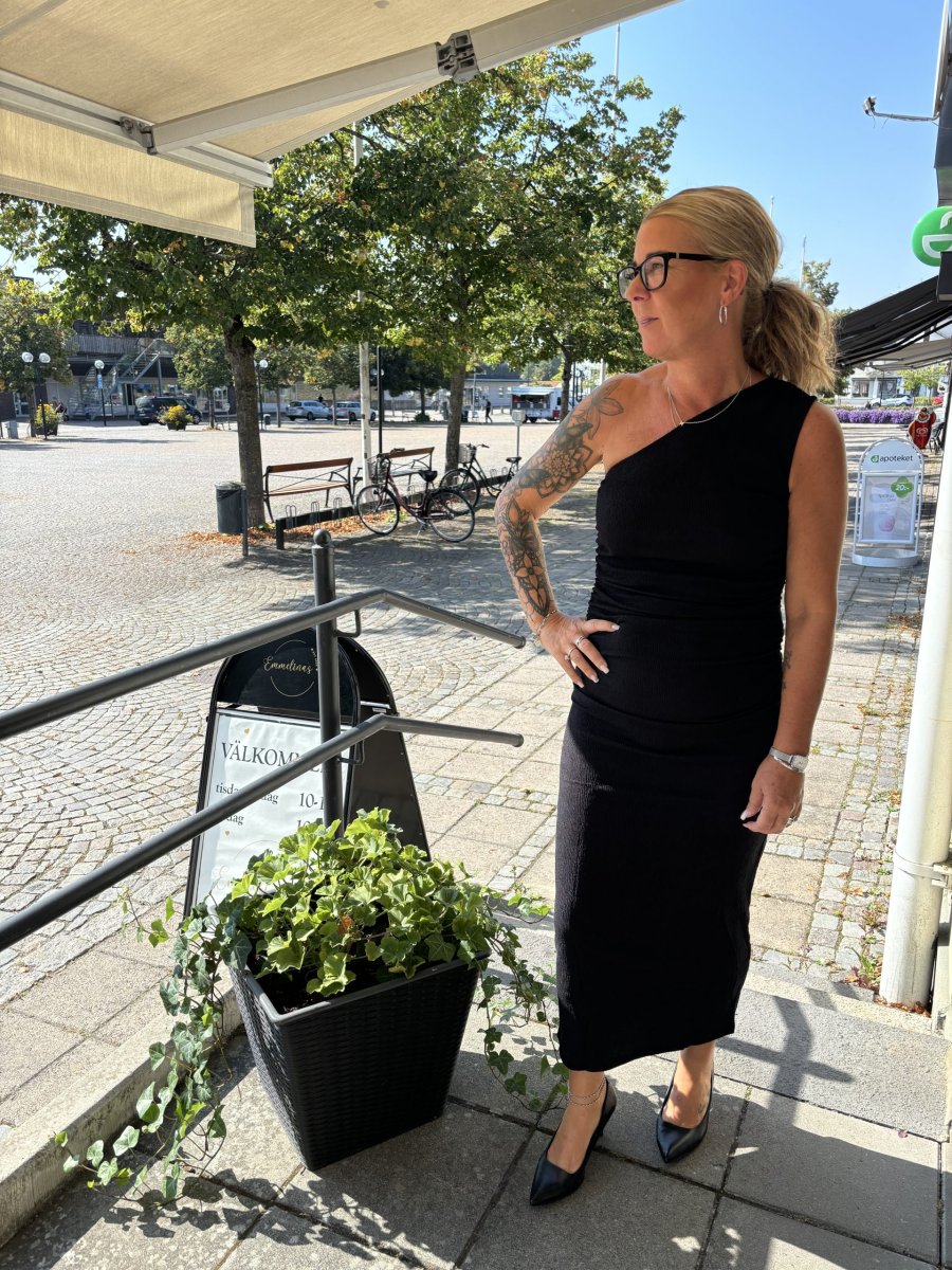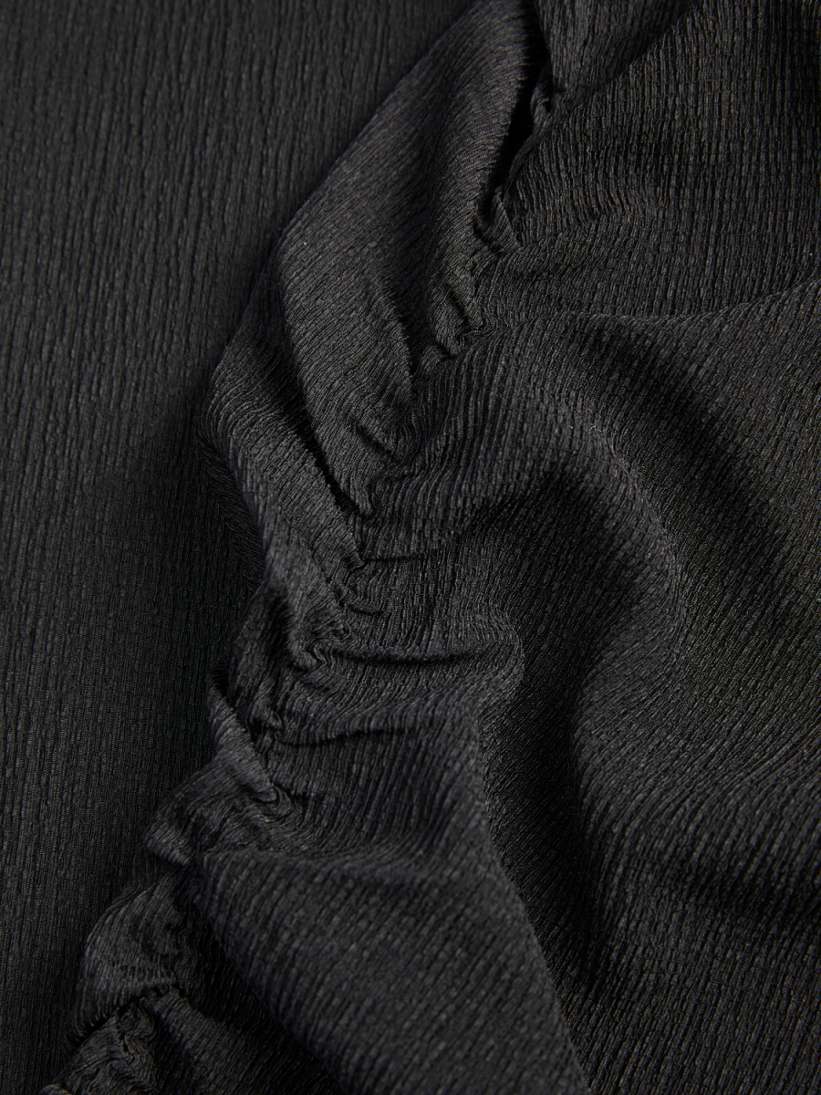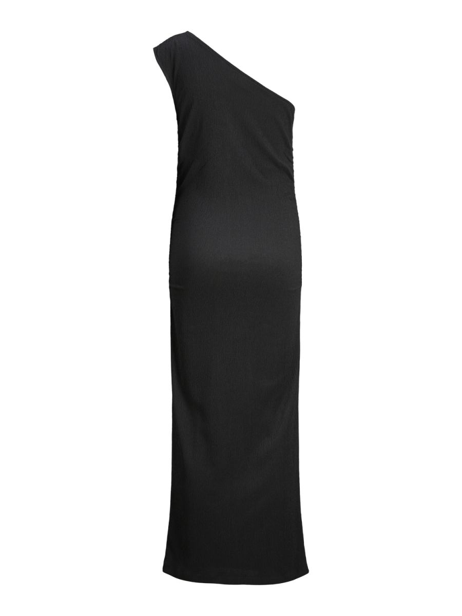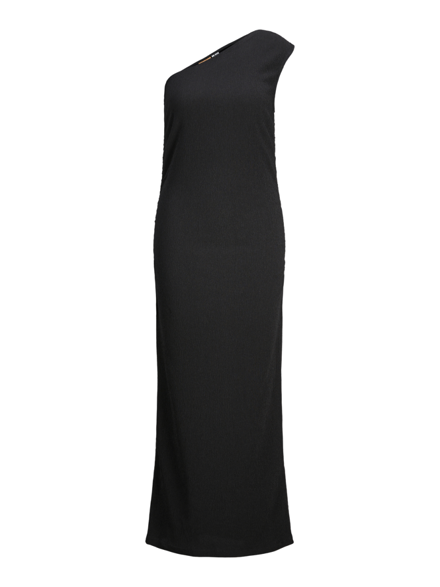One shoulder klänning med rynkdetaljer i sidorna. Tajt modell med stretch.