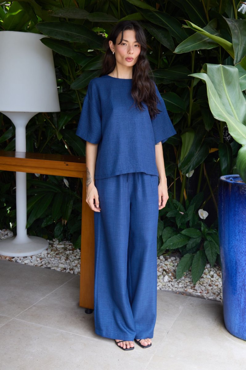 Vida byxor med luftig rak siluett, mjuk textur och elastisk midja med dragsko.