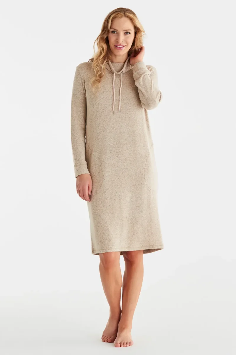 Denna mångsidiga klänning i borstad kvalitet med en stor och generös krage samt långa ärmar är inte bara ett elegant tillskott till din garderob utan också en perfekt morgonrock. Med dess komfort och tidlösa design kan du bära den under både avkopplade morgnar och speciella tillfällen och alltid känna dig bekväm och stilfull.
