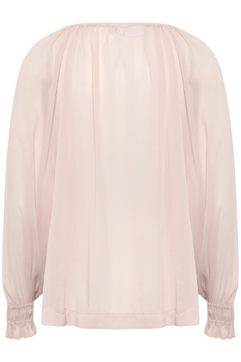 Transparent blus med lös passform, långa ärmar och elastiska ärmslut.