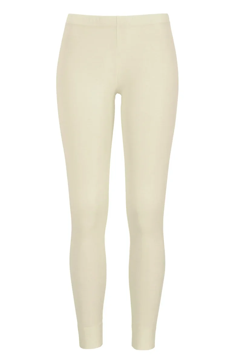 Upplev ultimat lyxkänsla med våra mjuka leggings i en ull- och silkeblandning av högsta kvalitet. Dessa leggings är perfekta för alla väder, med ullens isolerande egenskaper som både värmer när det är kallt och svalkar när det är varmt, medan silket ger en mjuk och följsam känsla. Materialet transporterar effektivt bort fukt och håller dig torr. Kombinera gärna med en överdel från vår ull/silke-serie Wilma för en komplett look. Tillverkade i Europa.