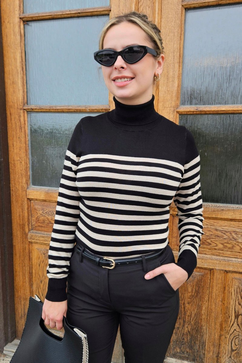 Lizza Randig Polotröja – Svart/ Feather Gray