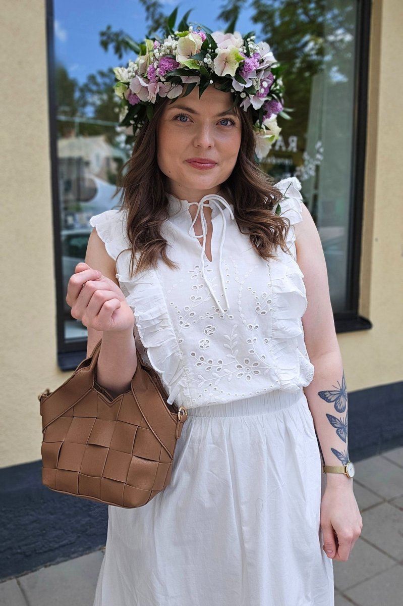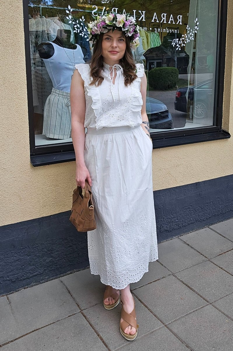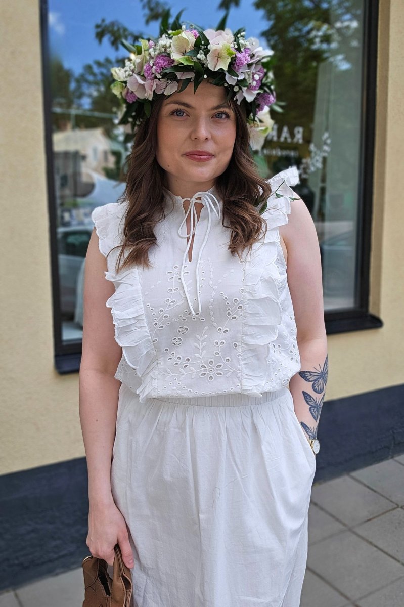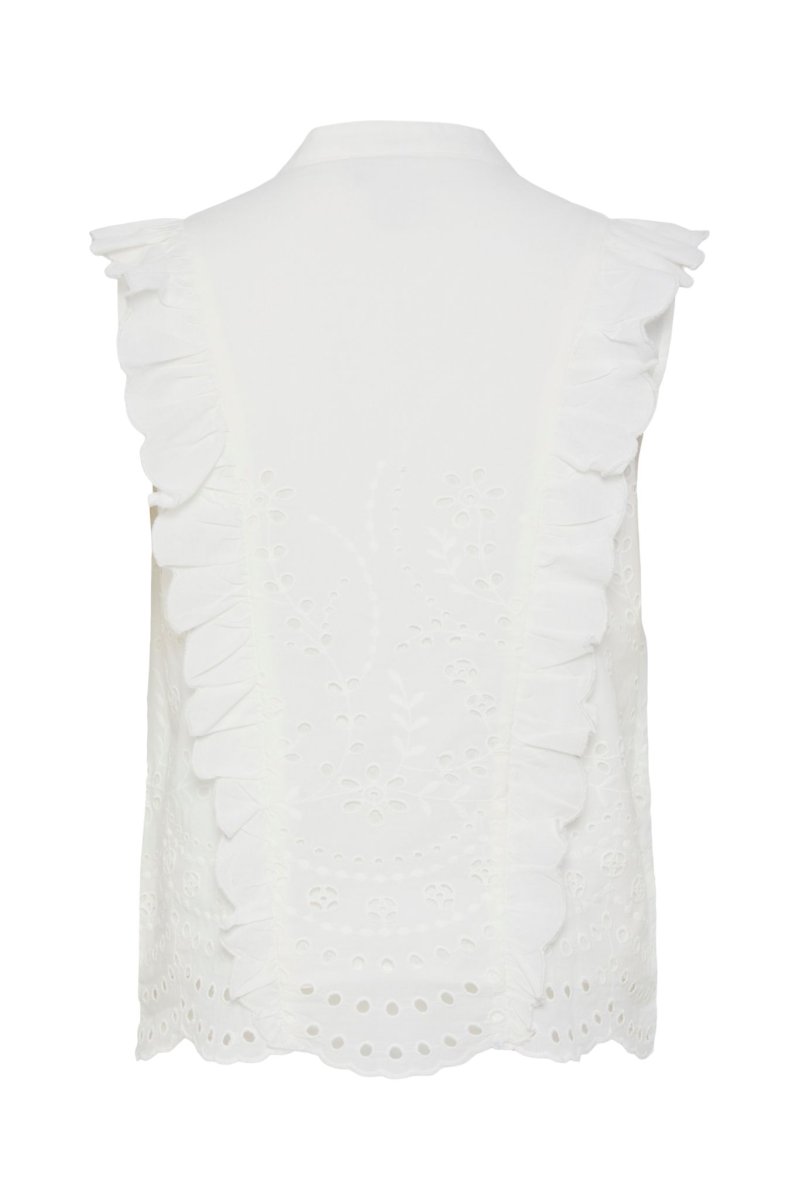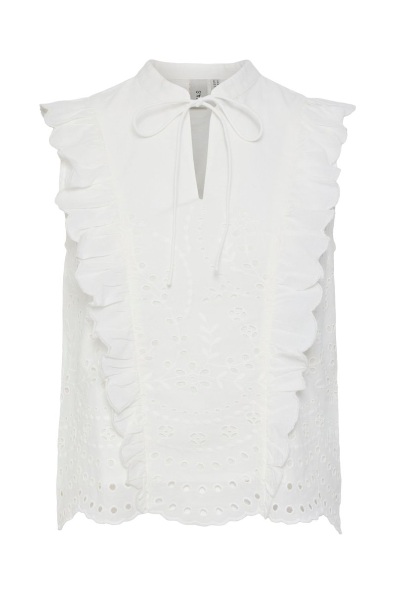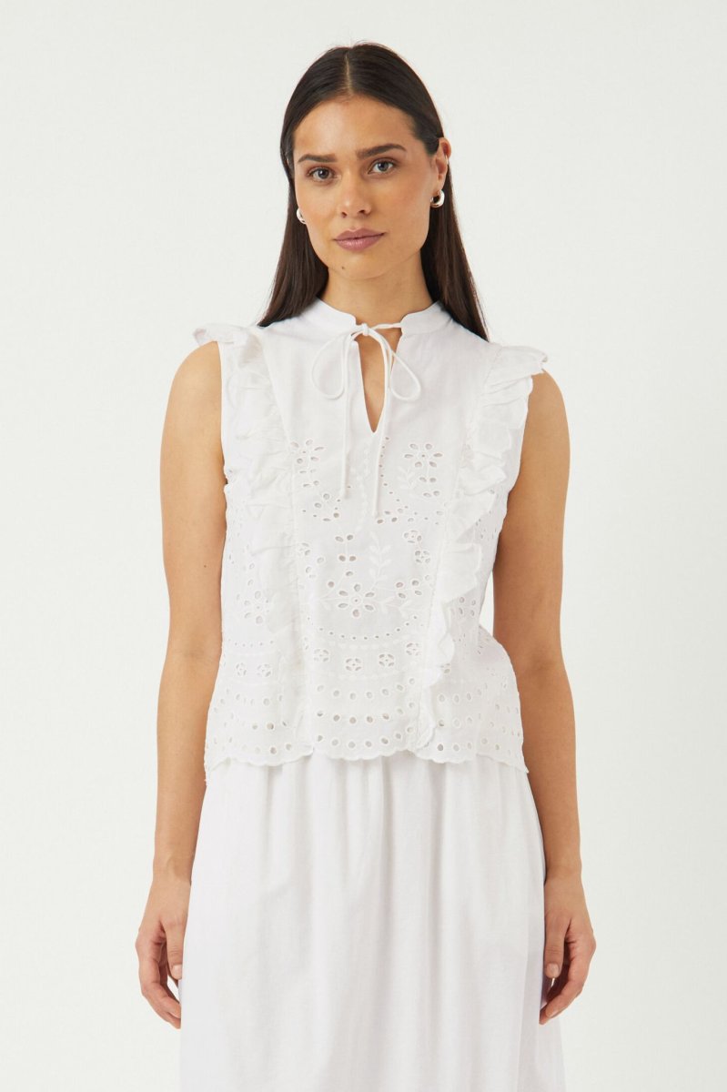 • Ärmlös modell med hålbroderier