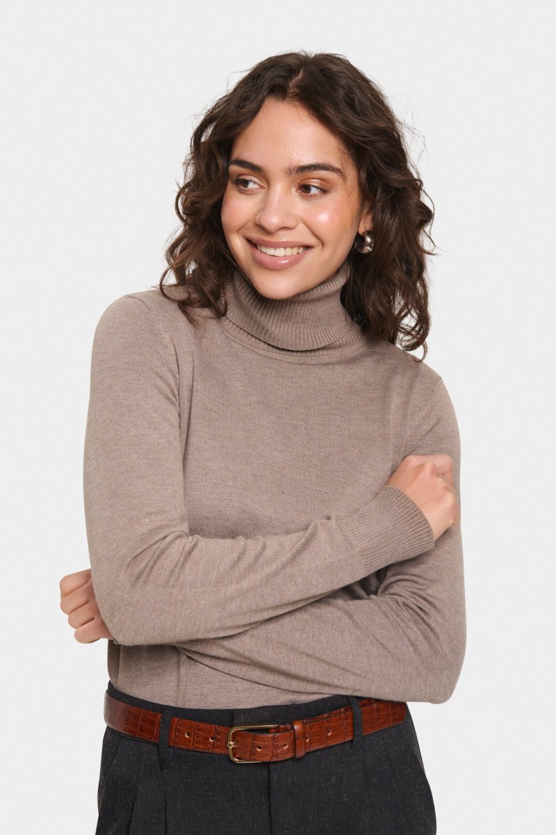 Stickad polotröja med lätt figursydd passform.