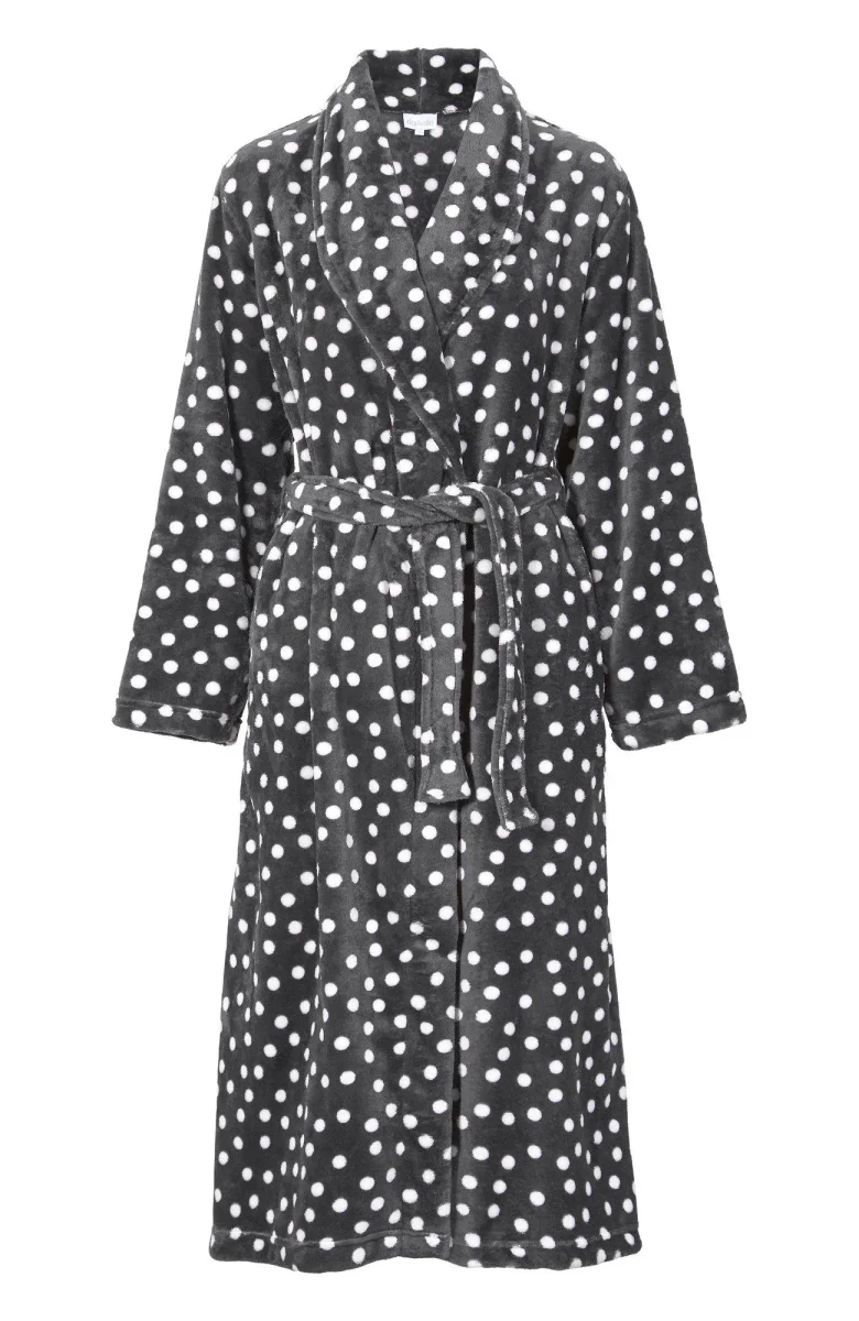 Morgonrock med knytband i midjan och med längre krage. Ingen luva.