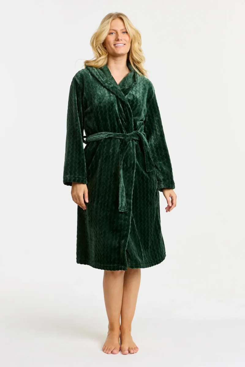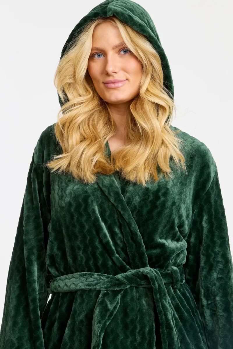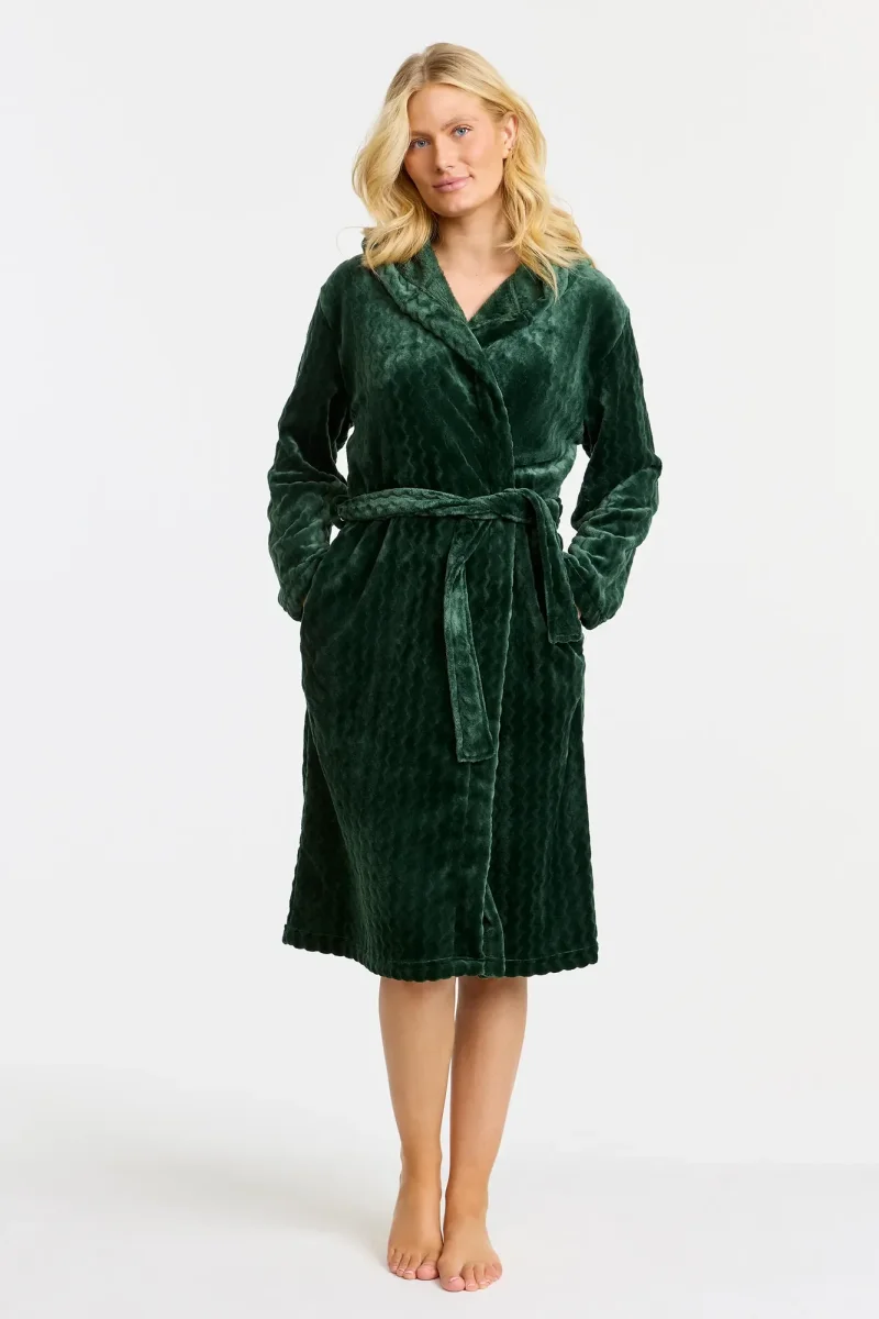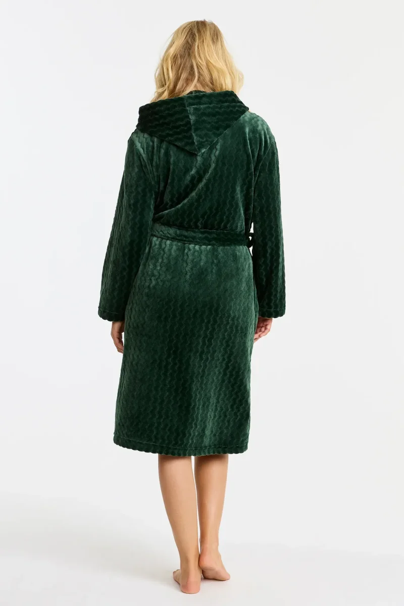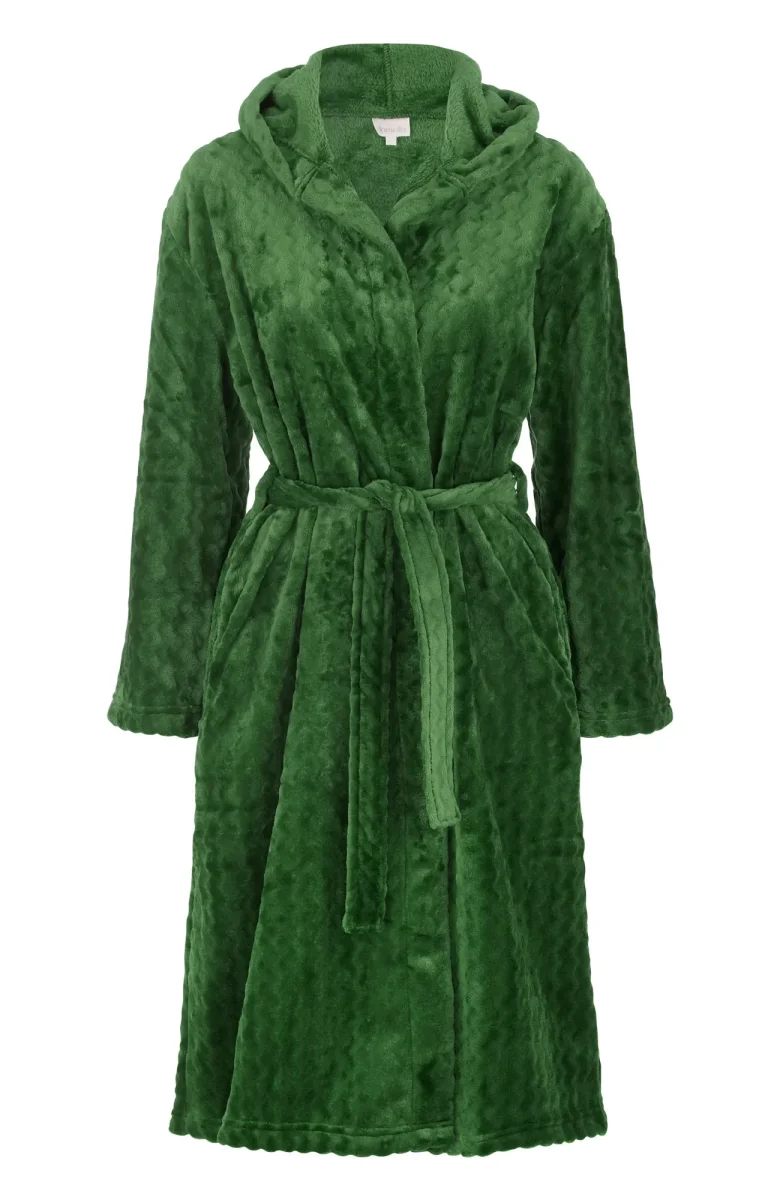 Vår Velour Fleece-morgonrock är här, designad för komfort och stil. Med en huva och diskreta sidfickor längs sömmarna är den ditt självklara val för både värme och en moderiktig look.