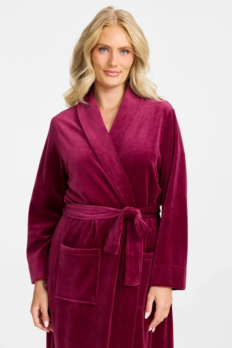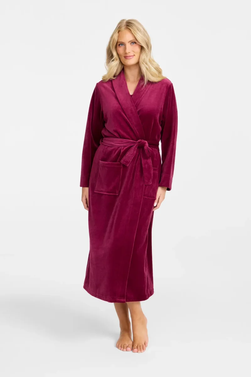 Upplev en kombination av elegans och komfort med vår velourrock, komplett med en sjalkrage och praktiska fickor. Den är idealisk för kyliga kvällar och morgnar eller för att helt enkelt mysa hemma.