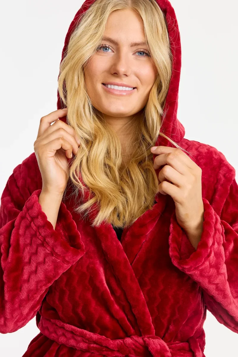 Vår Velour Fleece-morgonrock är här, designad för komfort och stil. Med en huva och diskreta sidfickor längs sömmarna är den ditt självklara val för både värme och en moderiktig look.
