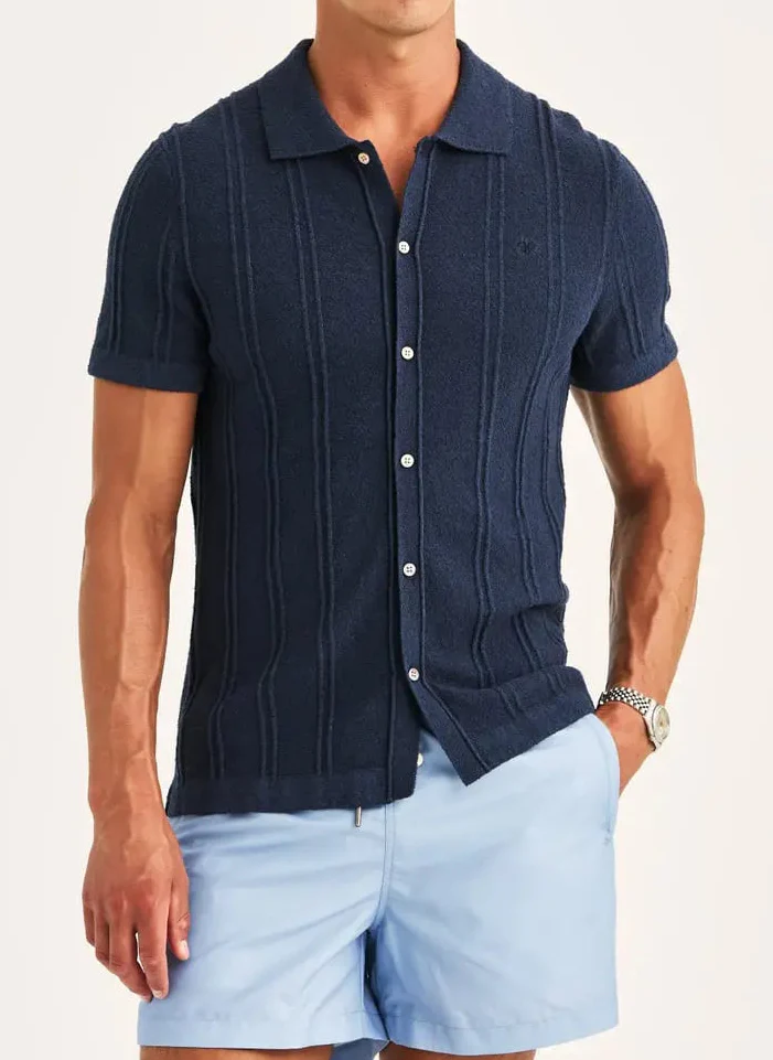 Morris Clayton Knitted SS Shirt är en stilren kortärmad skjorta som kombinerar retroinspirerad design med modern elegans. Den stickade strukturen i bomull och polyamid ger en perfekt balans mellan form, mjukhet och komfort, samtidigt som den skapar ett exklusivt och texturerat uttryck. Skjortan kan bäras knäppt till skräddade byxor för en mer uppklädd look eller öppen över en t-shirt för en avslappnad men sofistikerad stil. En modern tolkning av mid-century design – perfekt för smart casual.