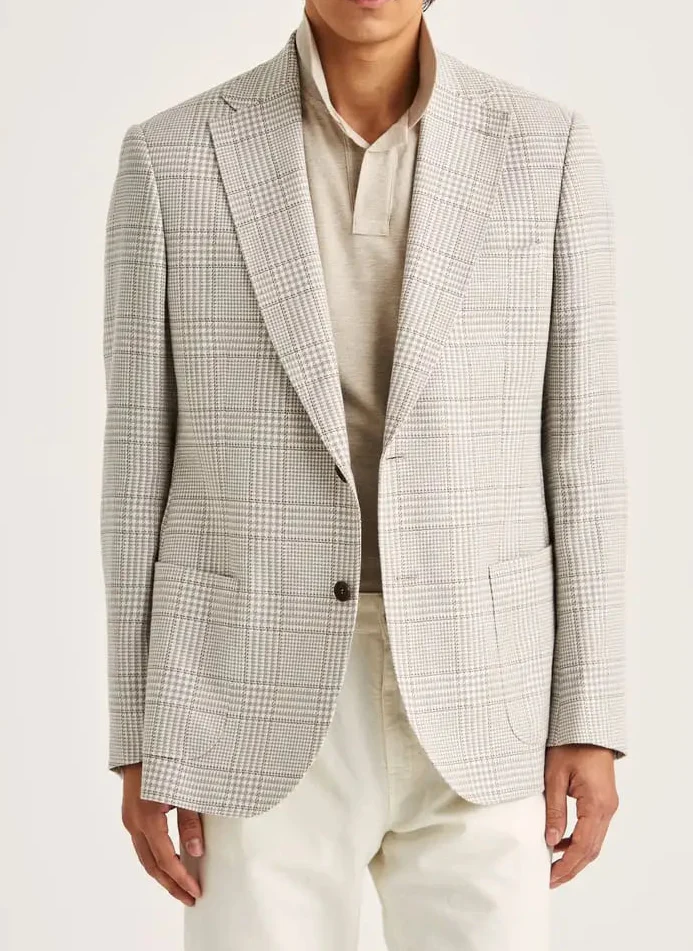 Morris Summer Check Jacket är en elegant och somrig kavaj i en lätt bomull- och linneblandning med ett sofistikerat rutmönster som balanserar klassisk stil med modern känsla. Den halvfodrade konstruktionen ger hög andningsförmåga och komfort, medan den slim fit-skurna silhuetten skapar ett skarpt men avslappnat uttryck – perfekt från tidig vår till sensommar. Designad som en enkelknäppt kavaj med två knappar, dubbla sprund och stilrena patchfickor blir detta ett mångsidigt plagg som enkelt kan bäras med skjorta eller finstickad tröja för en avslappnat välklädd look.