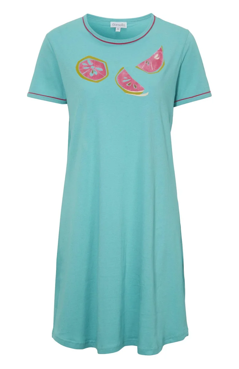 Nattlinne i bomullsjersey med motivtryck. Med rund hals och kort ärm.