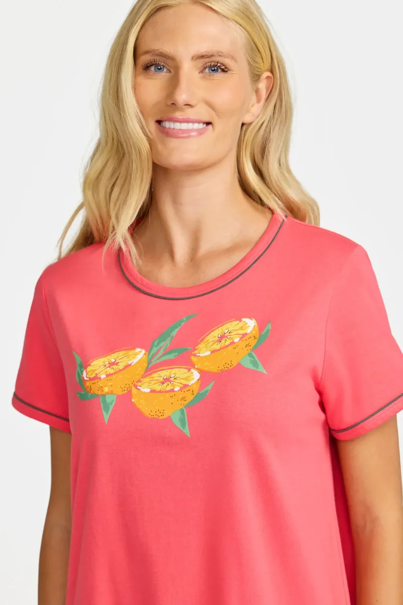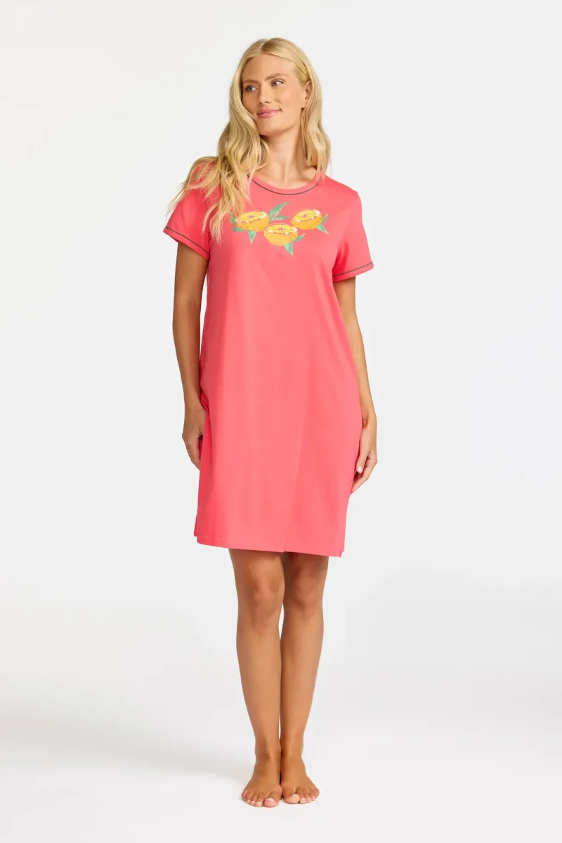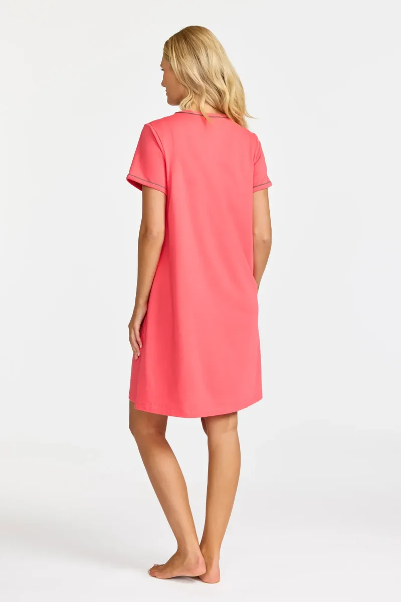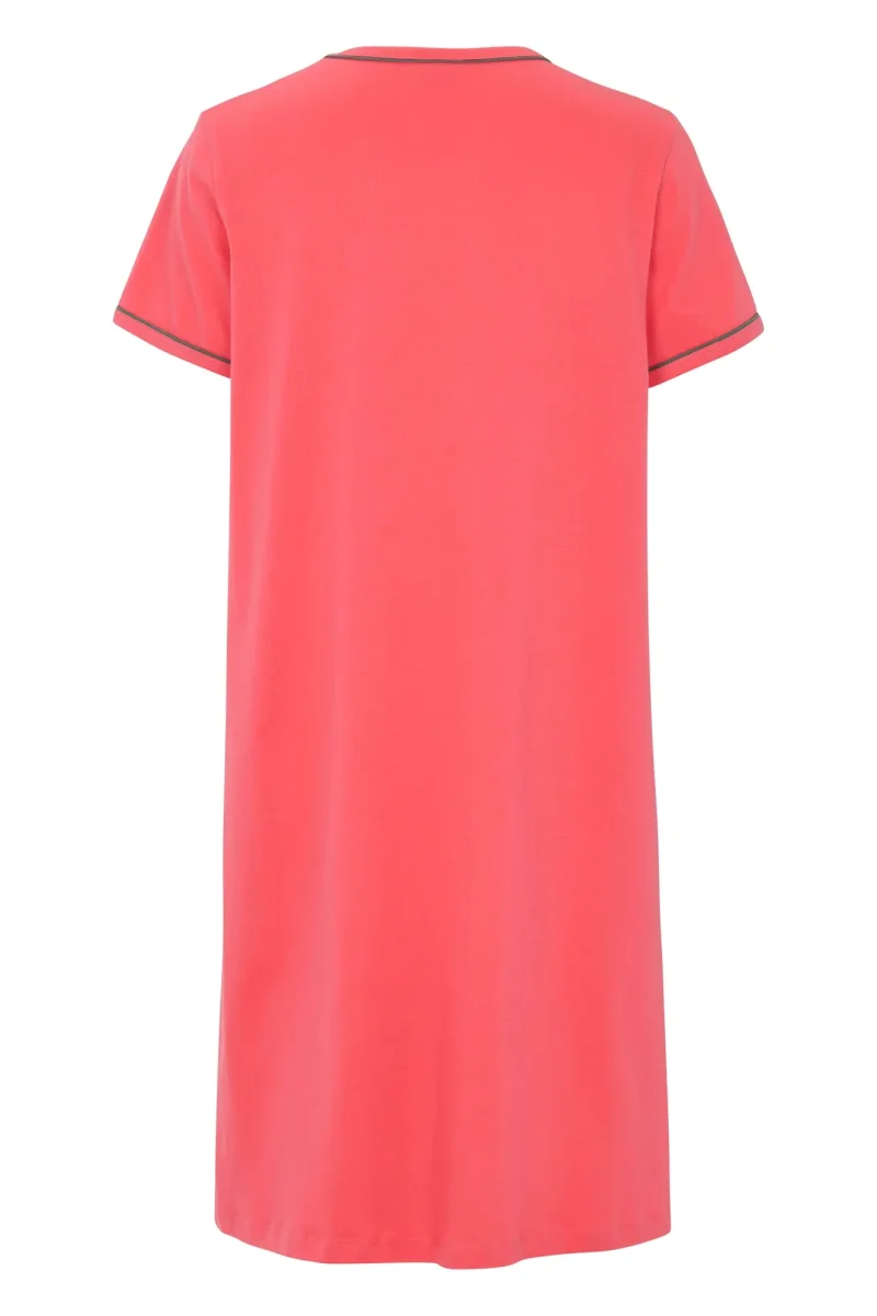 Bekvämt nattlinne i mjuk och stretchig bomullsjersey med ett diskret, mindre placerat tryck framtill. De färgade sömmarna vid den runda halsringningen och de korta ärmarna ger en fin kontrast och en modern touch till den klassiska designen. Perfekt för sköna nätter och avslappnade stunder hemma.