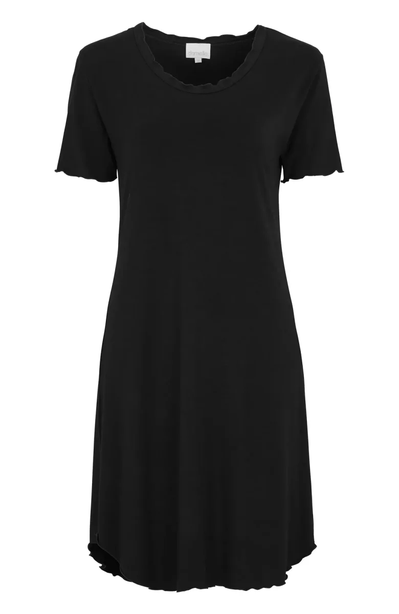 Ett nattlinne i bambuviskos med en elegant vågformad kant vid halsen och längst ned. Med sin rundade hals och korta ärmar är detta nattlinne både bekvämt och stilfullt. Tillverkat i bambu för en mjuk och skön känsla, vilket gör det till det perfekta valet för en fridfull natt.