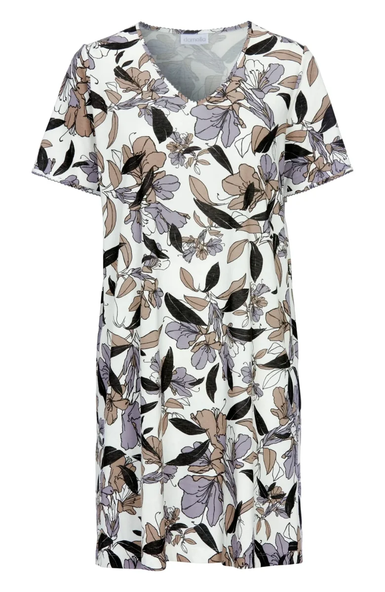 Ett mönstrat nattlinne med v-ringning och korta ärmar som kombinerar stil och komfort. Det mjuka materialet och den avslappnade passformen gör det perfekt för kalla nätter. Med sin eleganta design erbjuder nattlinnet en feminin och bekväm känsla.
