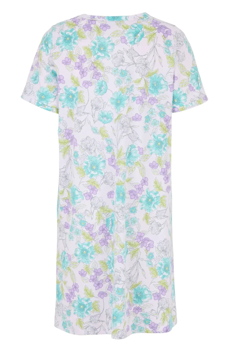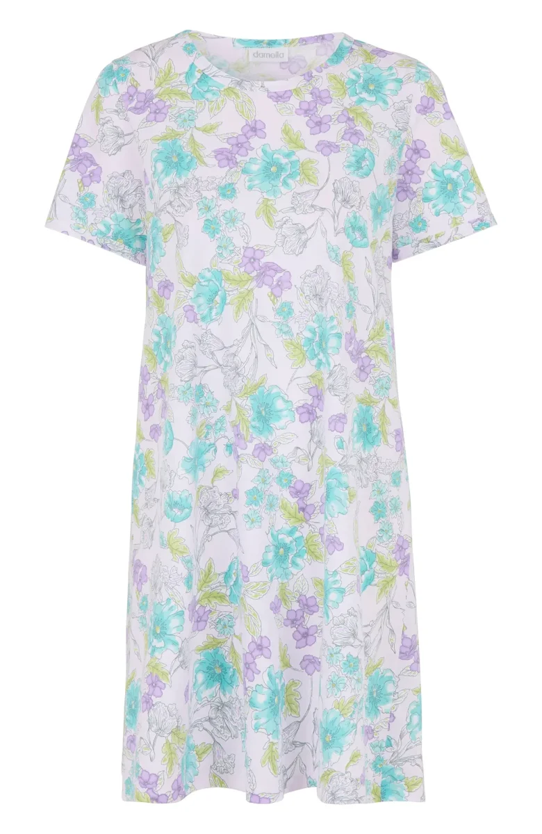 Ett mjukt och bekvämt nattlinne i bomullsjersey med ett vackert mönster. Nattlinnet har korta ärmar och passar perfekt för både varma och svalare nätter. Bomullsmaterialet är andningsbart och behagligt, vilket ger både svalka och mjuk värme för en avslappnande sömn.