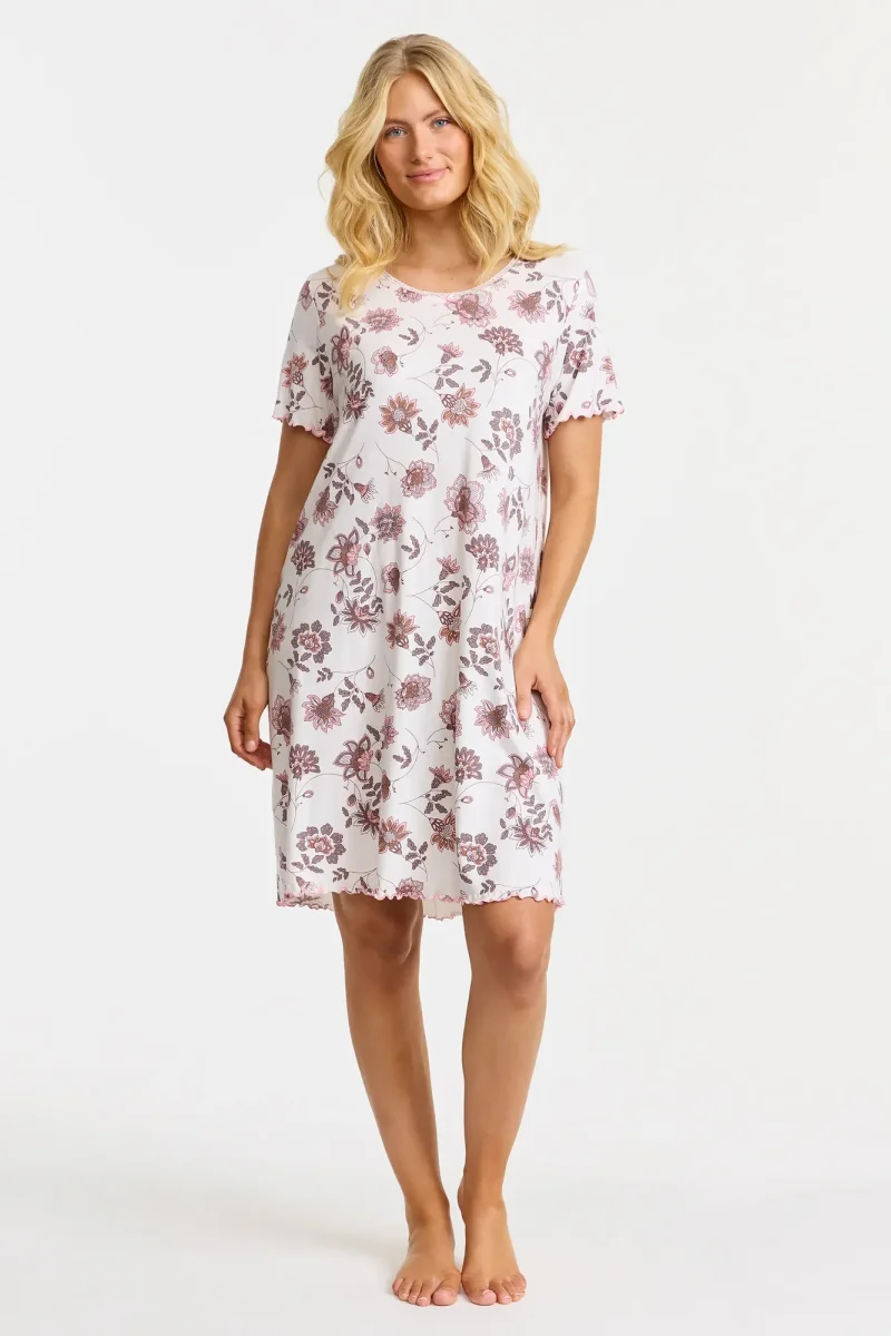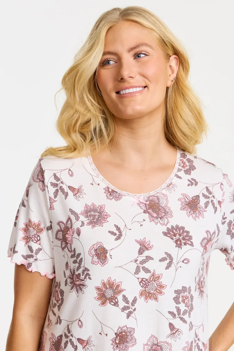 Vi presenterar ett nattlinne som är 95 cm långt och tillverkat av en mjuk blandning av modal och bomull, vilket ger en behaglig känsla mot huden och god andningsförmåga. Modalfibrerna tillför extra mjukhet och stretch, medan bomullen bidrar med naturlig komfort och hållbarhet. Den elastiska spetskanten ger en elegant touch, vilket gör nattlinnet både bekvämt och stilfullt för natten.