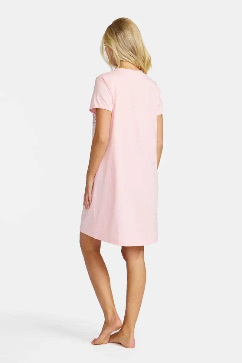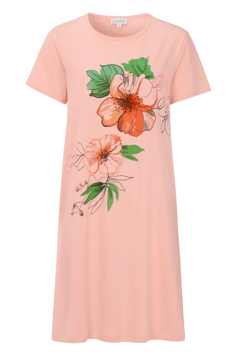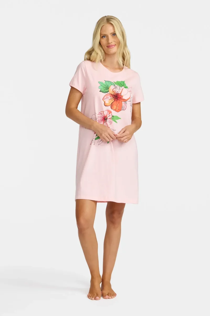 Bekvämt nattlinne i mjuk bomullsjersey med ett blomtryck framtill som ger en feminin och livfull känsla. Den runda halsringningen och de korta ärmarna skapar en avslappnad och klassisk silhuett, perfekt för mysiga kvällar och sköna nätter hemma.