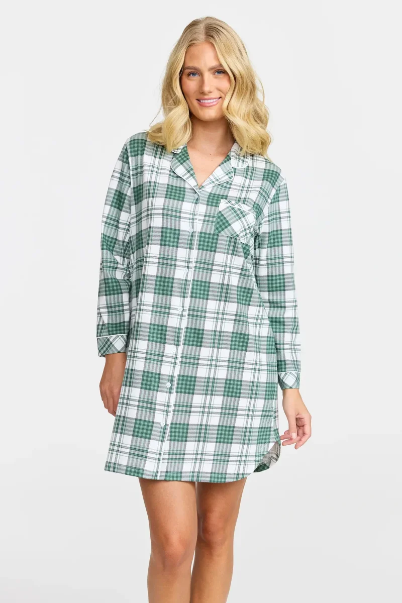 Nattskjorta i mjuk jersey med klassiskt rutigt mönster, krage, knappar och långa ärmar. Det mjuka jersey-materialet gör att du kan njuta av en behaglig nattsömn. Den avslappnade passformen ger full rörelsefrihet, perfekt för avkoppling eller mysiga stunder hemma.