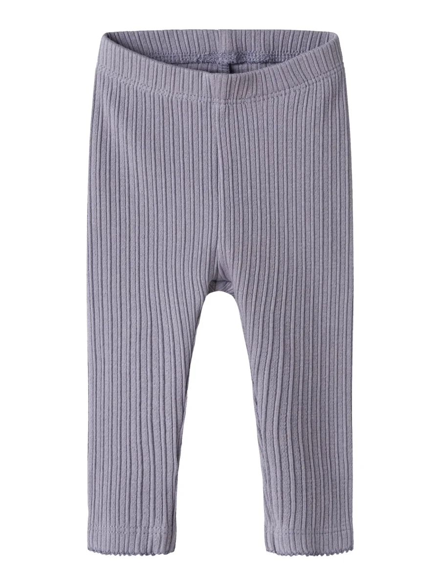 Ribbade leggings med spets/broderad nederkant. Färg: Lavender Gray Material: 95% Ekologisk Bomull, 5% Elastan