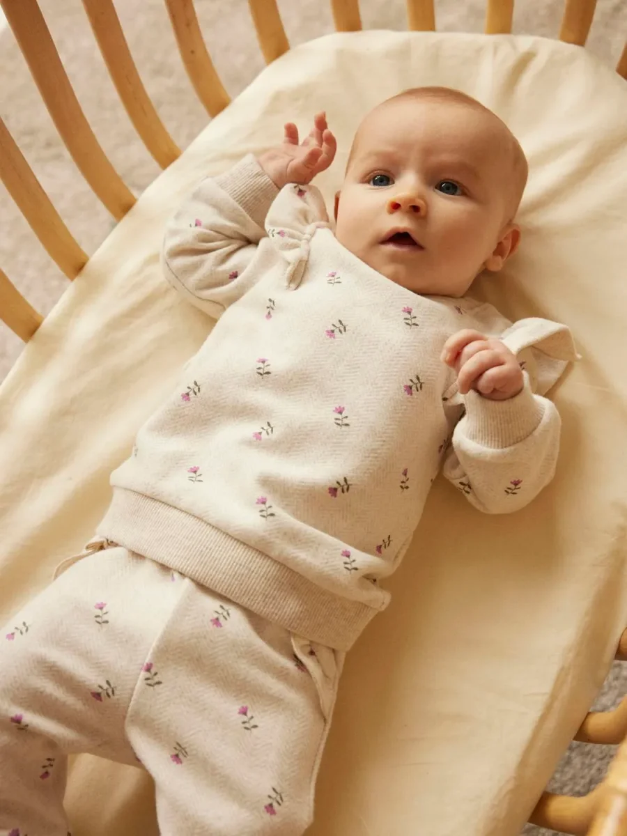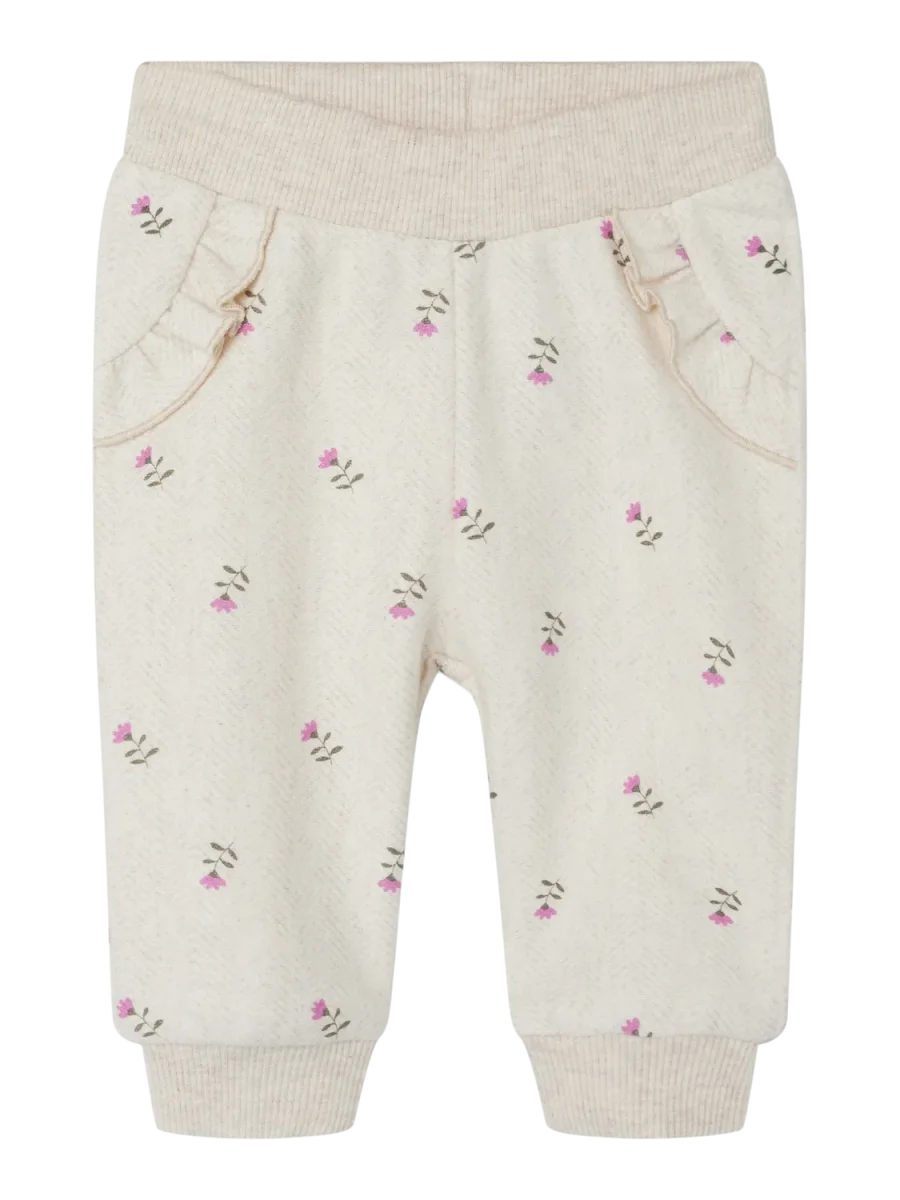 Mjuk och skön sweatbyxa med blommor på. Finns matchande tröja till.
