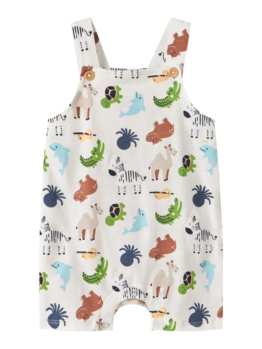 Hängselshorts i trikå med ställbara hängslen och tryckknappar i grenen.