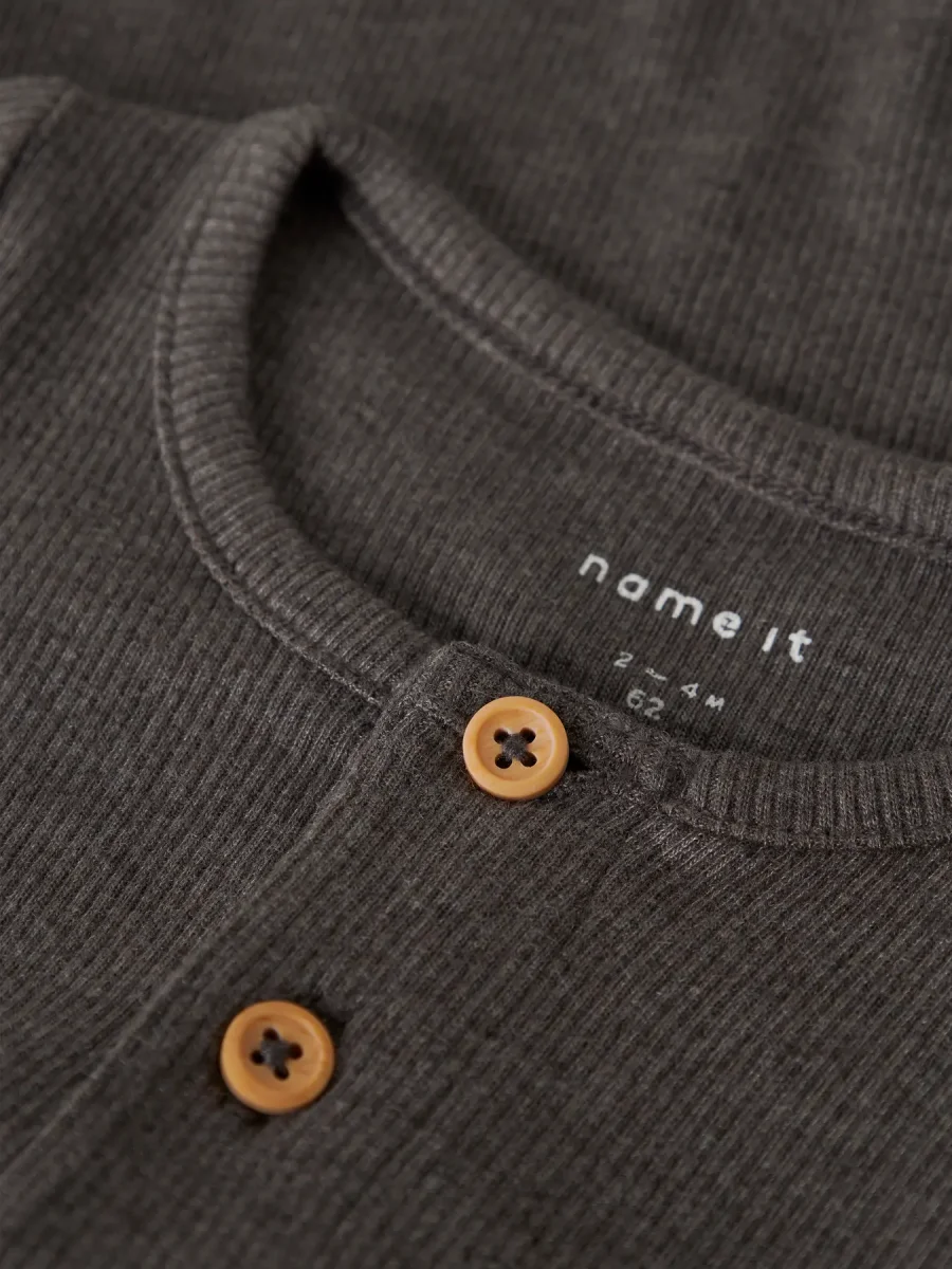 Ribbad body med farfarsknäppning och tryckknappar i grenen.