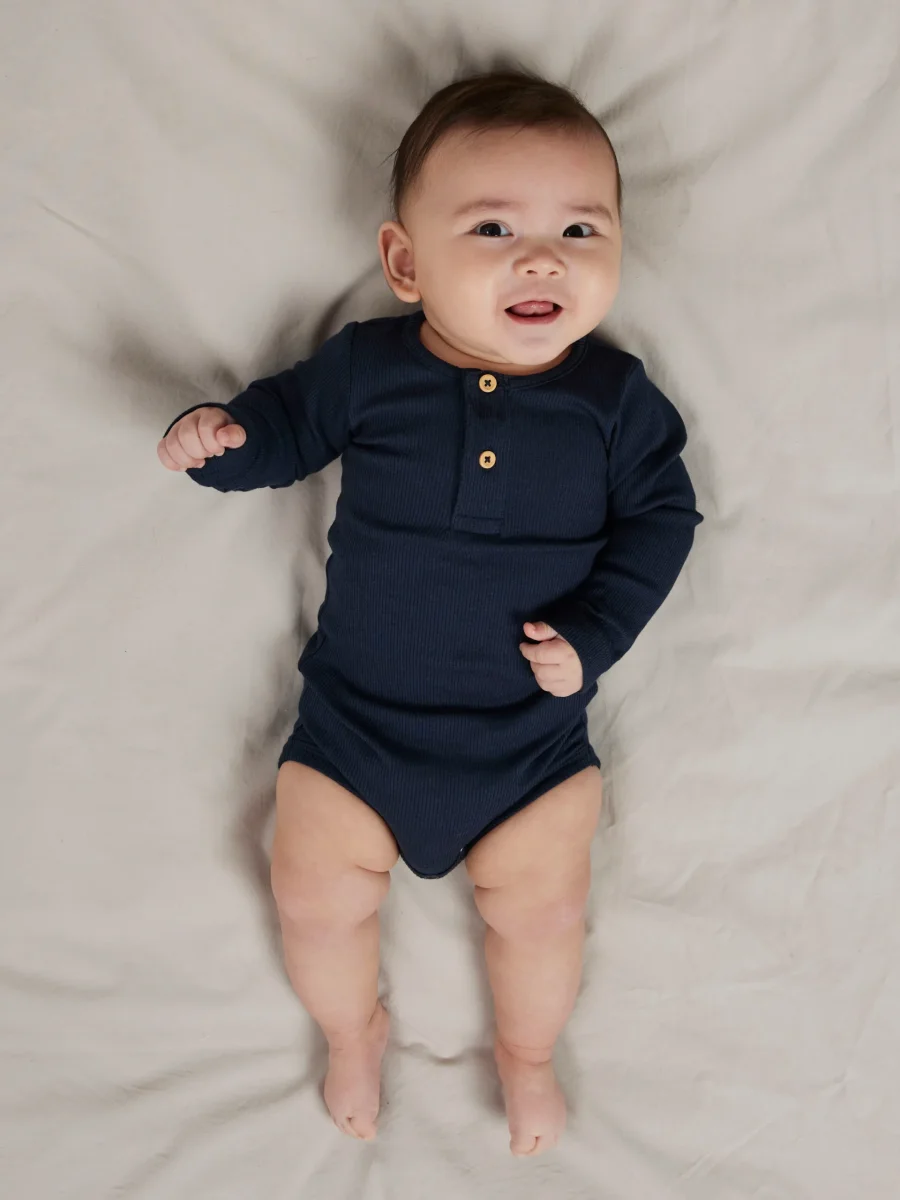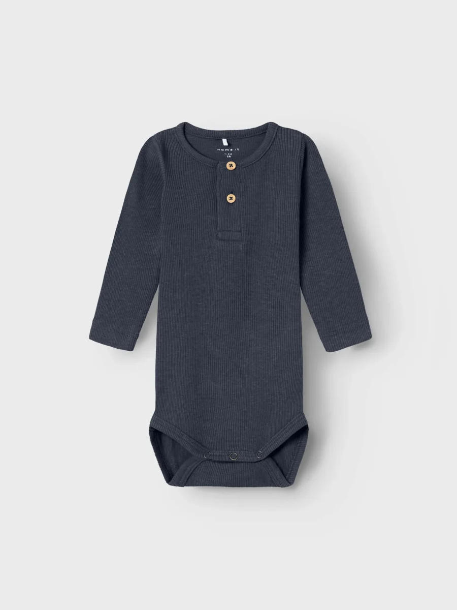 Ribbad body med farfarsknäppning och tryckknappar i grenen.