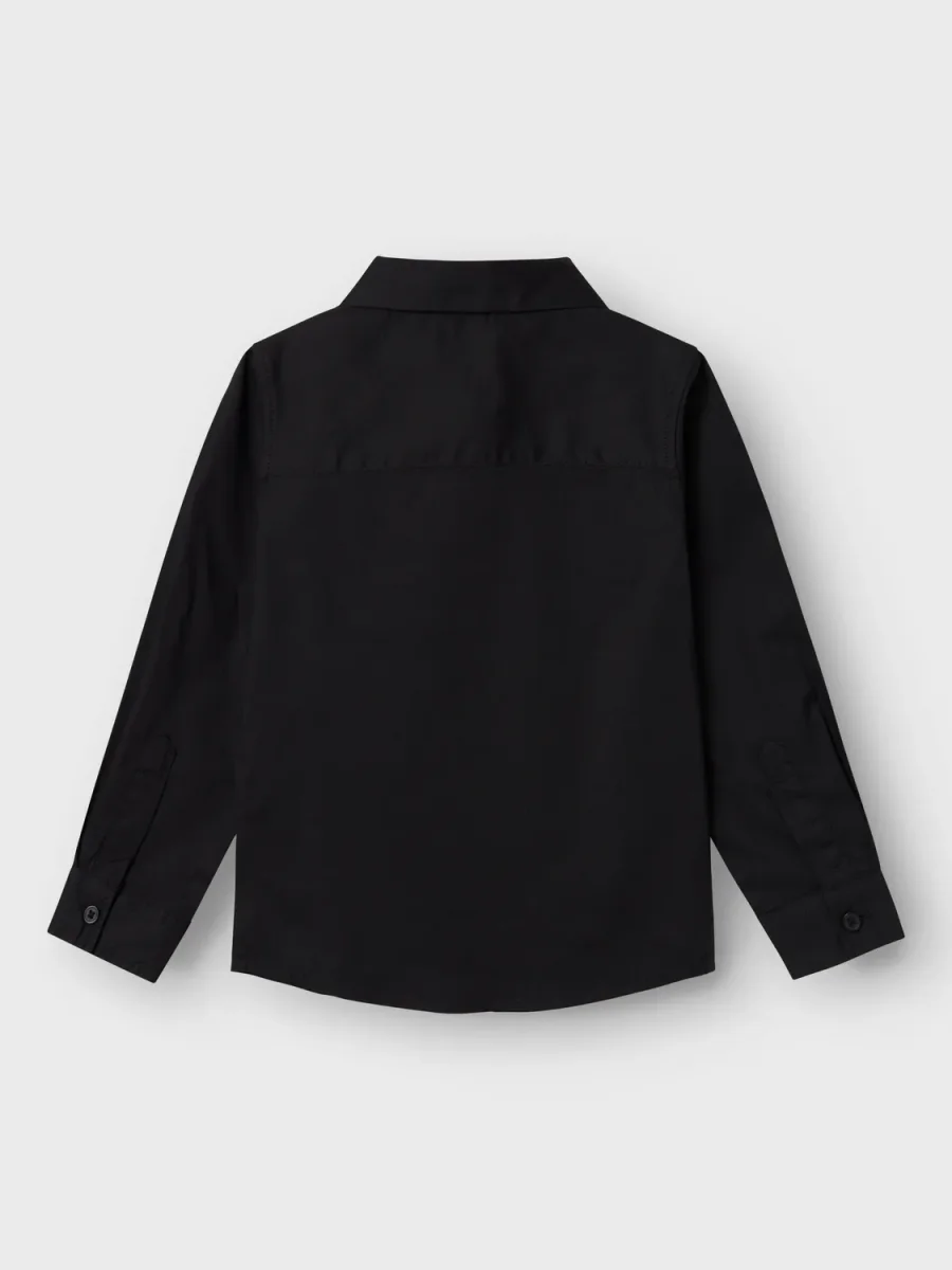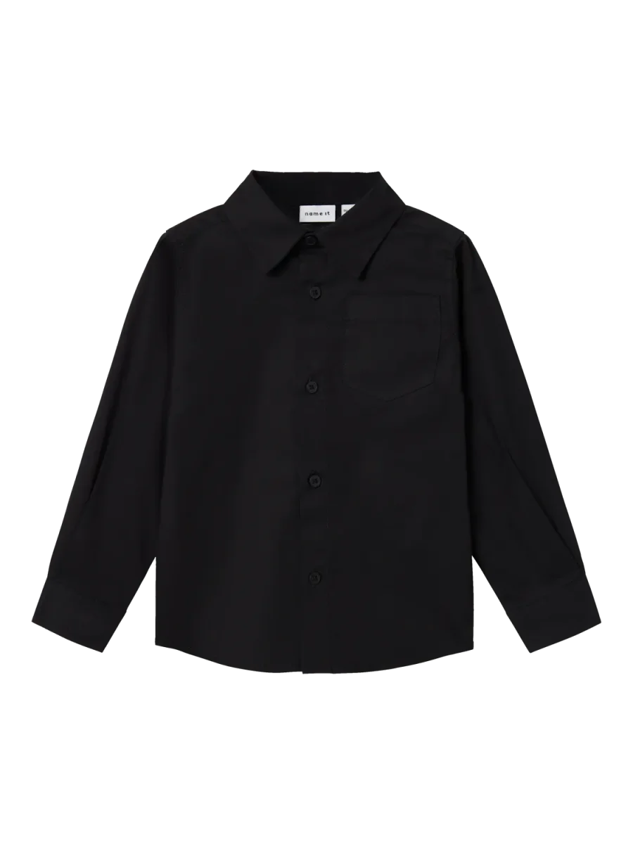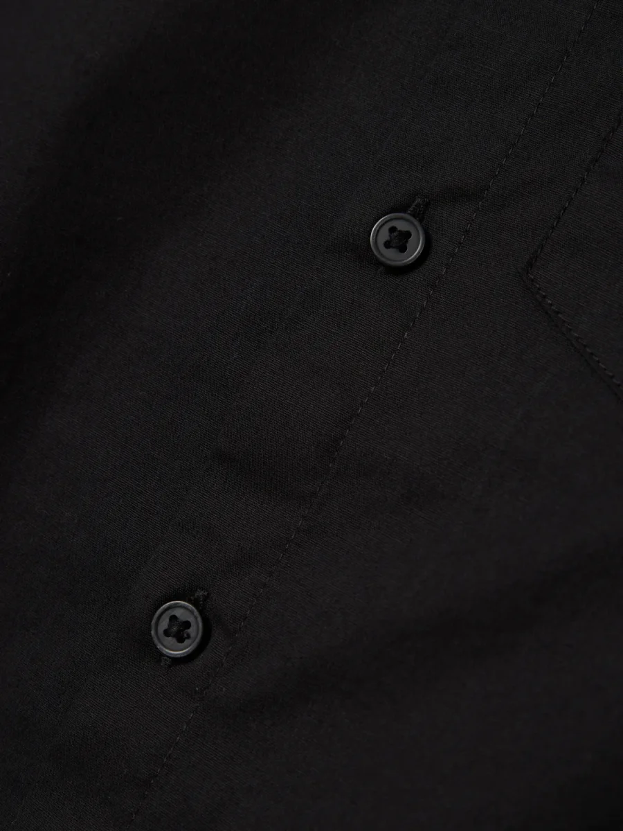 Svart skjorta med bröstficka och svarta knappar.