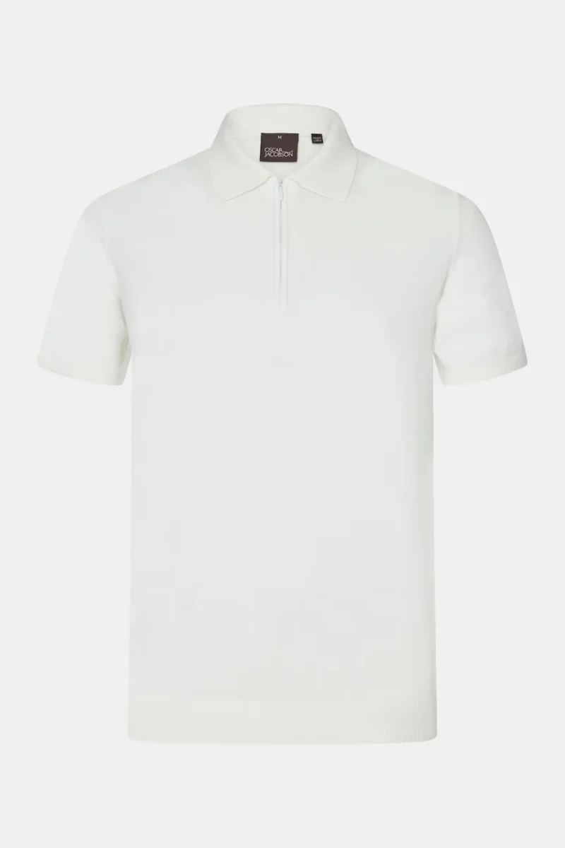 OSCAR JACOBSON Otto Zip Polo. Kortärmad kragtröja tillverkad i finstickad ekologisk bomull. Försedd med elegant dragkedja i kragen. Tillverkad i 100% bomull.