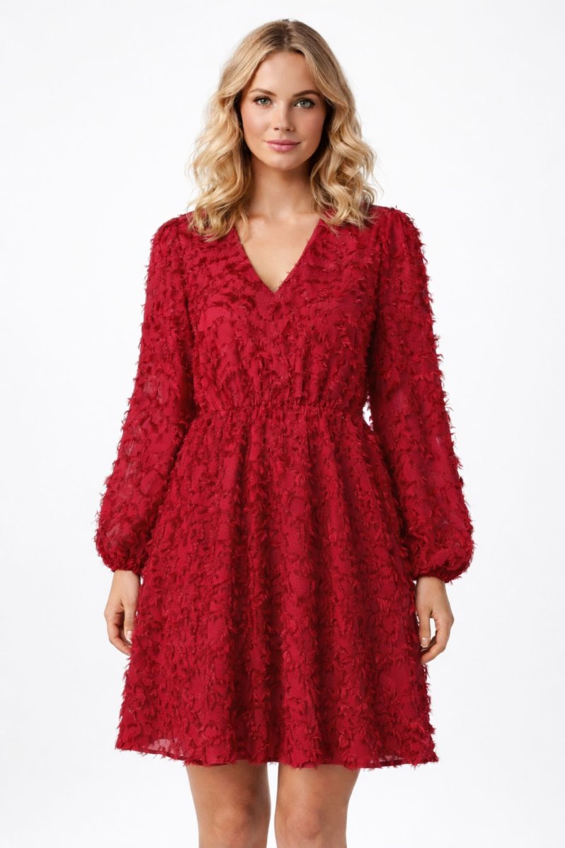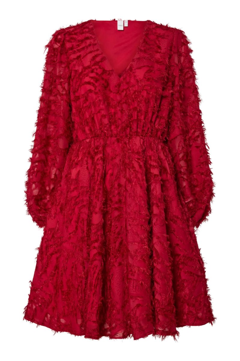 Kort A-linjeformad klänning i heltäckande ögonfransspets.