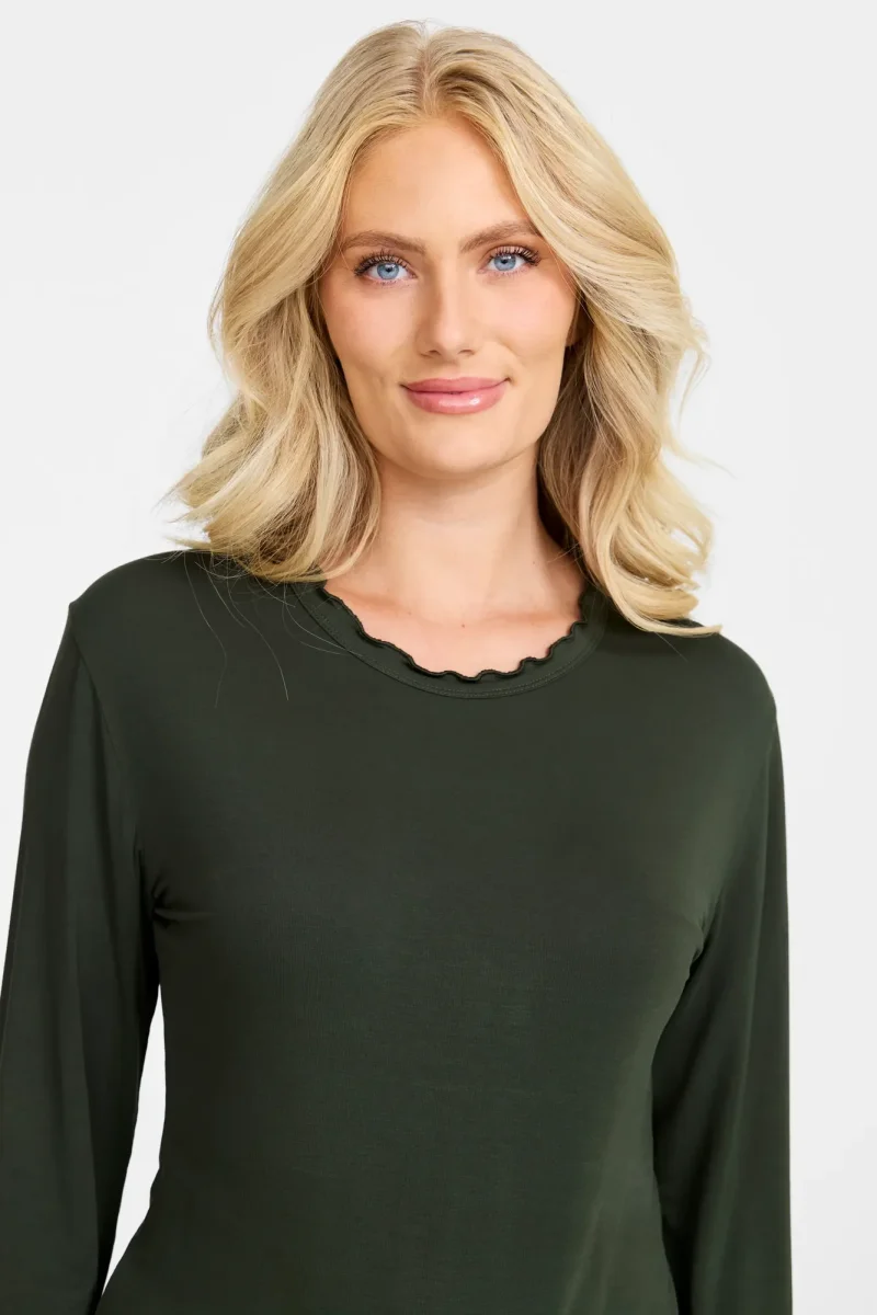 Upptäck ultimat komfort och stil med vår mjuka pyjamas ur serien Amelia, tillverkad i högkvalitativ bambuviskos. Med eleganta vågformade detaljer blir den det perfekta valet för avkopplande nätter och mysiga morgnar. En symbol för lyxig avslappning som låter dig känna dig både bekväm och elegant.