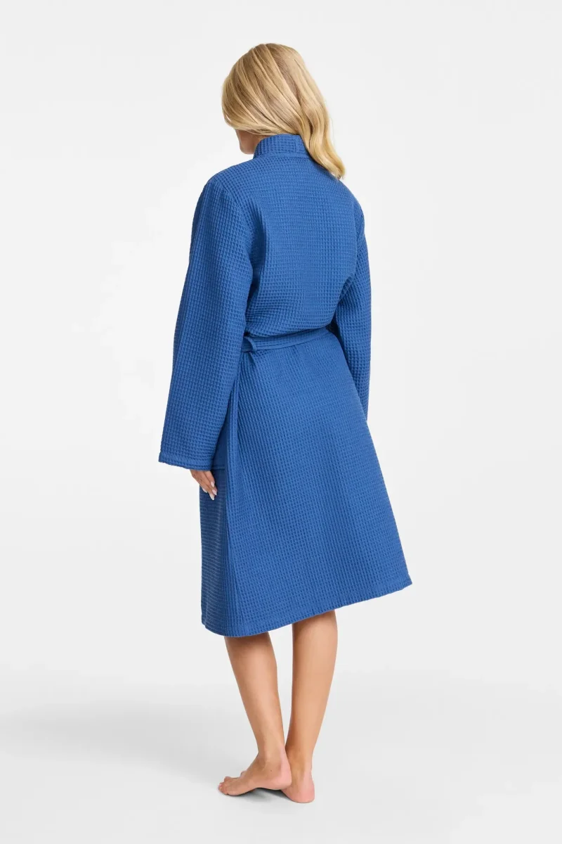 Denna lyxiga morgonrock i bomullsjersey med våffelstruktur erbjuder både komfort och stil på bästa sätt. Med lång ärm och eleganta, praktiska fickor är den perfekt för att slappna av hemma eller som ett stiligt plagg på stranden. Denna morgonrock i unisexstorlekar är både praktisk och sofistikerad, vilket gör den till ett mångsidigt tillskott i varje garderob.