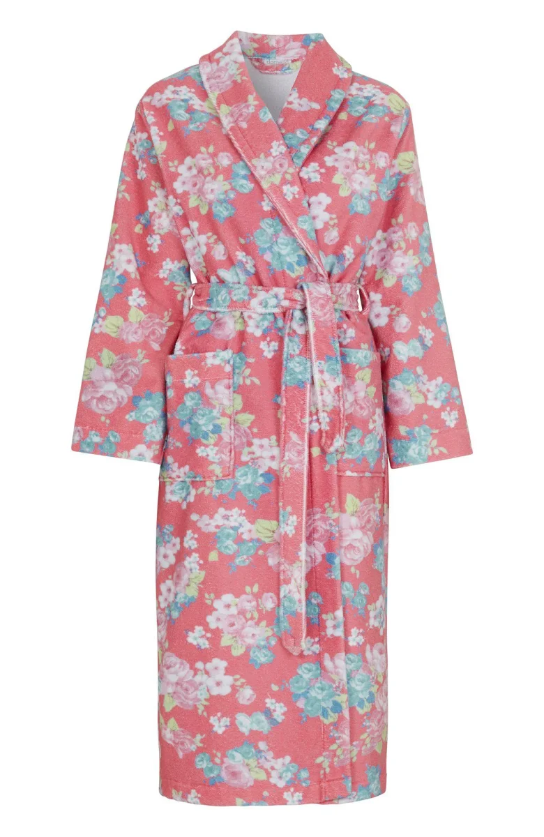 Utforska den allsidiga omlottrocken i mönstrad skuren frotté, som inte bara är perfekt för avslappnade stunder hemma eller efter en uppfriskande dusch, utan också kan användas som en bekväm baddrock. Med sin mjuka och absorberande frottékonstruktion och långa ärmar håller denna rock dig varm och bekväm efter badet eller under lugna kvällar. Den stilfulla sjalkragen och praktiska fickorna lägger till en touch av funktionalitet och stil till ditt dagliga avslappningsritual.
