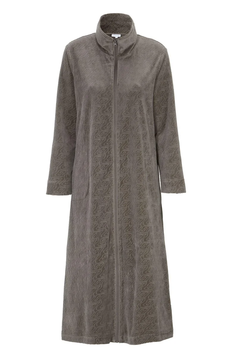 Omlottrock i velour med lång ärm, dragkedja samt fickor i sidorna. Rocken har ett fint mönster i tyget.