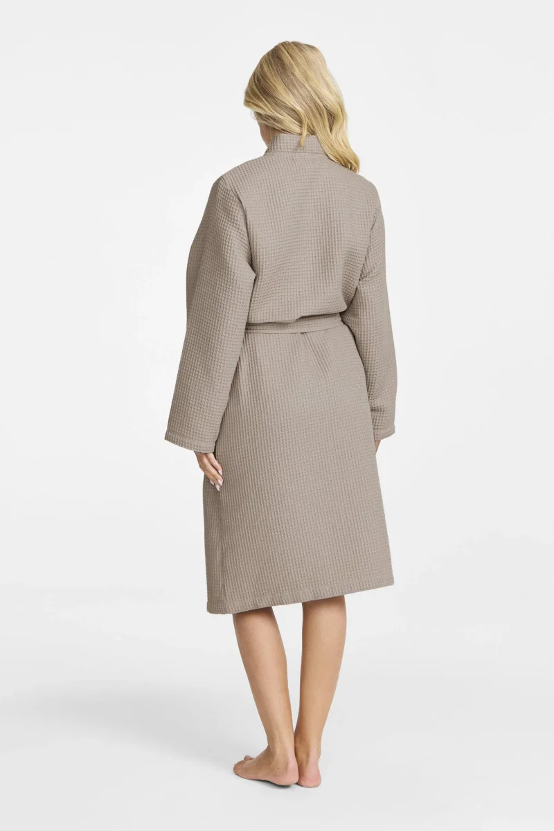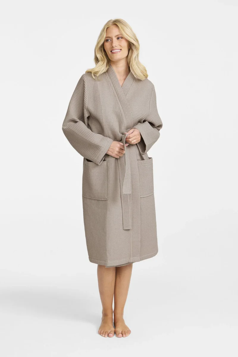 Denna lyxiga morgonrock i bomullsjersey med våffelstruktur erbjuder både komfort och stil på bästa sätt. Med lång ärm och eleganta, praktiska fickor är den perfekt för att slappna av hemma eller som ett stiligt plagg på stranden. Denna morgonrock i unisexstorlekar är både praktisk och sofistikerad, vilket gör den till ett mångsidigt tillskott i varje garderob.