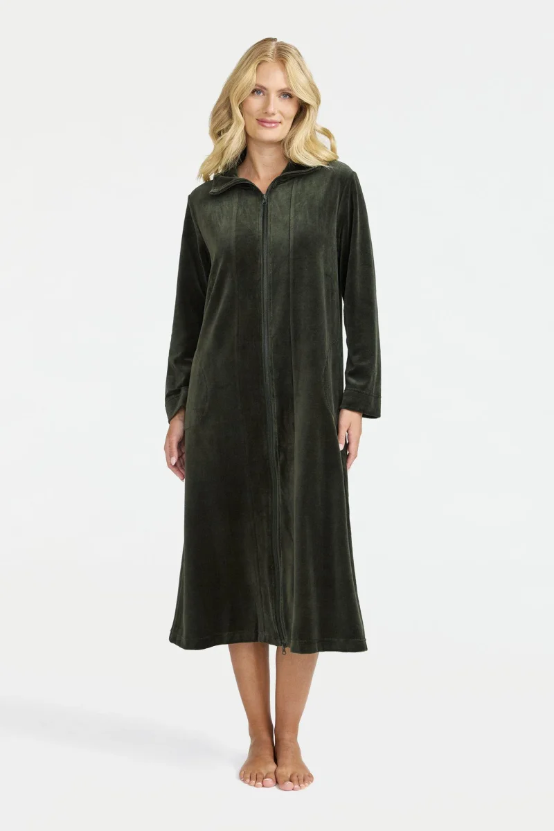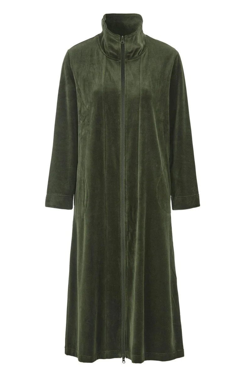 Utforska vår eleganta velourrock med praktisk tvåvägs dragkedja och diskreta fickor i sidsömmarna. Denna rock kombinerar stil och funktion för en sofistikerad look. Perfekt för att lägga till en touch av lyx till din mysgarderob.