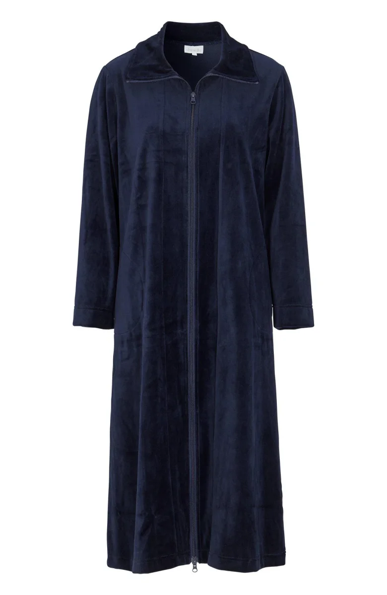 Utforska vår eleganta velourrock med praktisk tvåvägs dragkedja och diskreta fickor i sidsömmarna. Denna rock kombinerar stil och funktion för en sofistikerad look. Perfekt för att lägga till en touch av lyx till din mysgarderob.