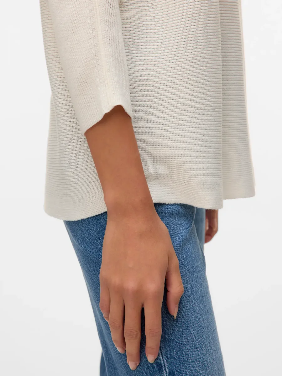 3/4 ärmad tunnstickad tröja med båthals.